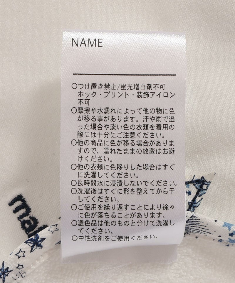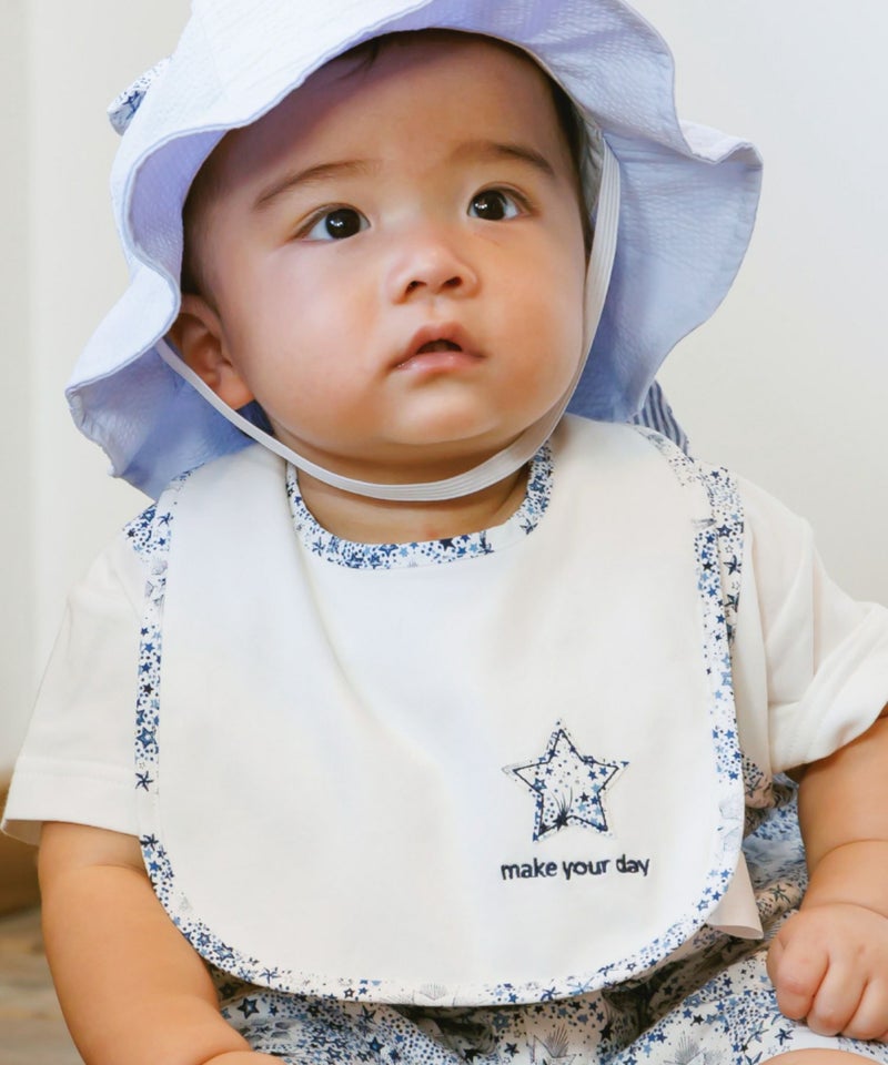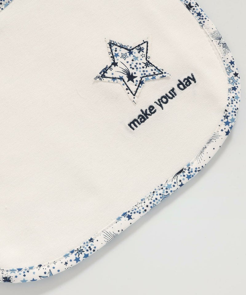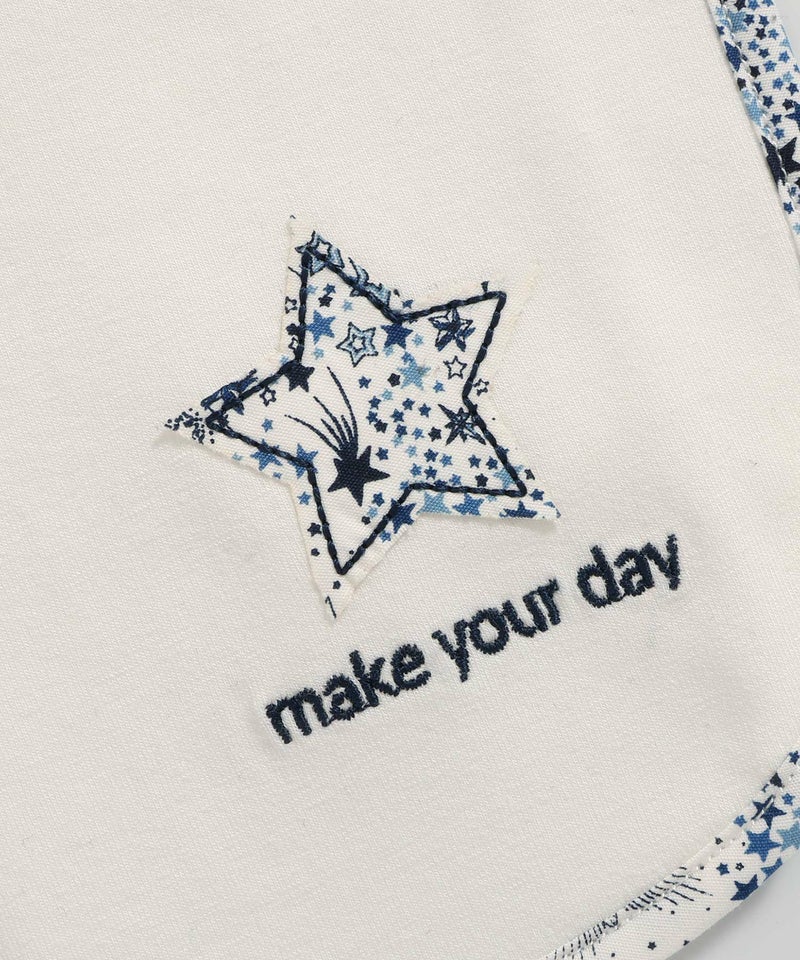 本体表面)綿58% レーヨン38% ポリウレタン4% 本体裏側)綿80% ポリエステル20% パイピング・星アップリケ部分)綿100% 防水シート)ポリエステル100%