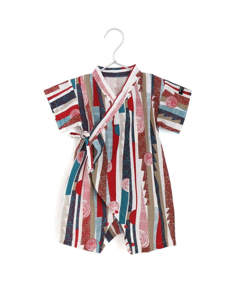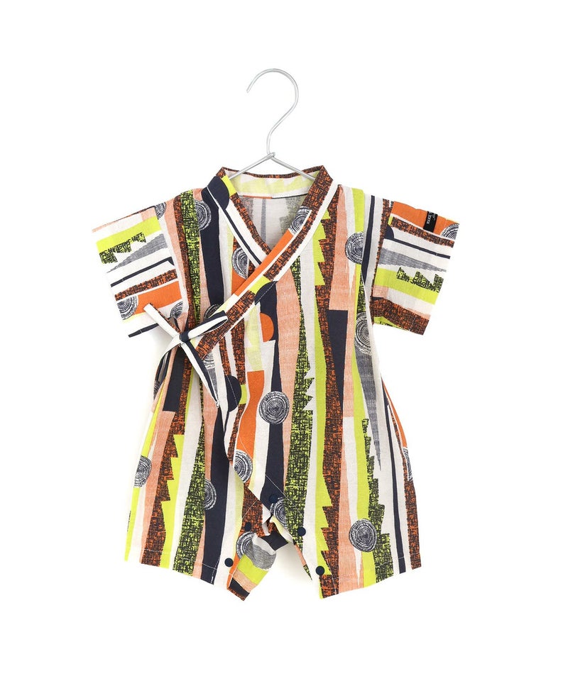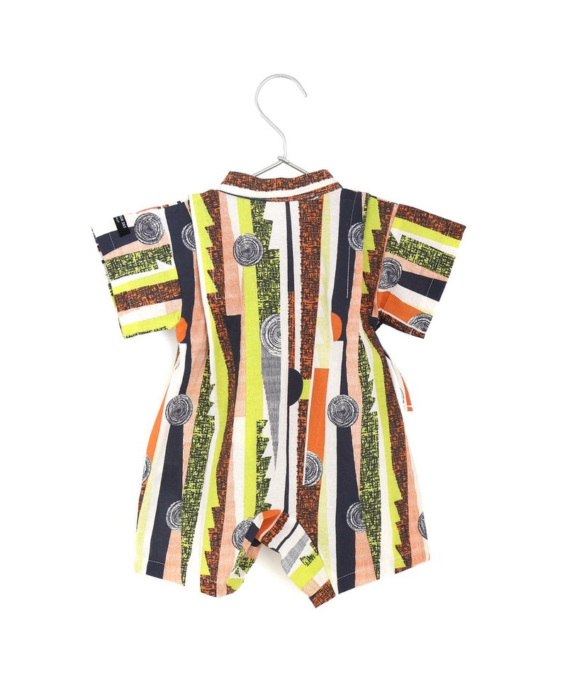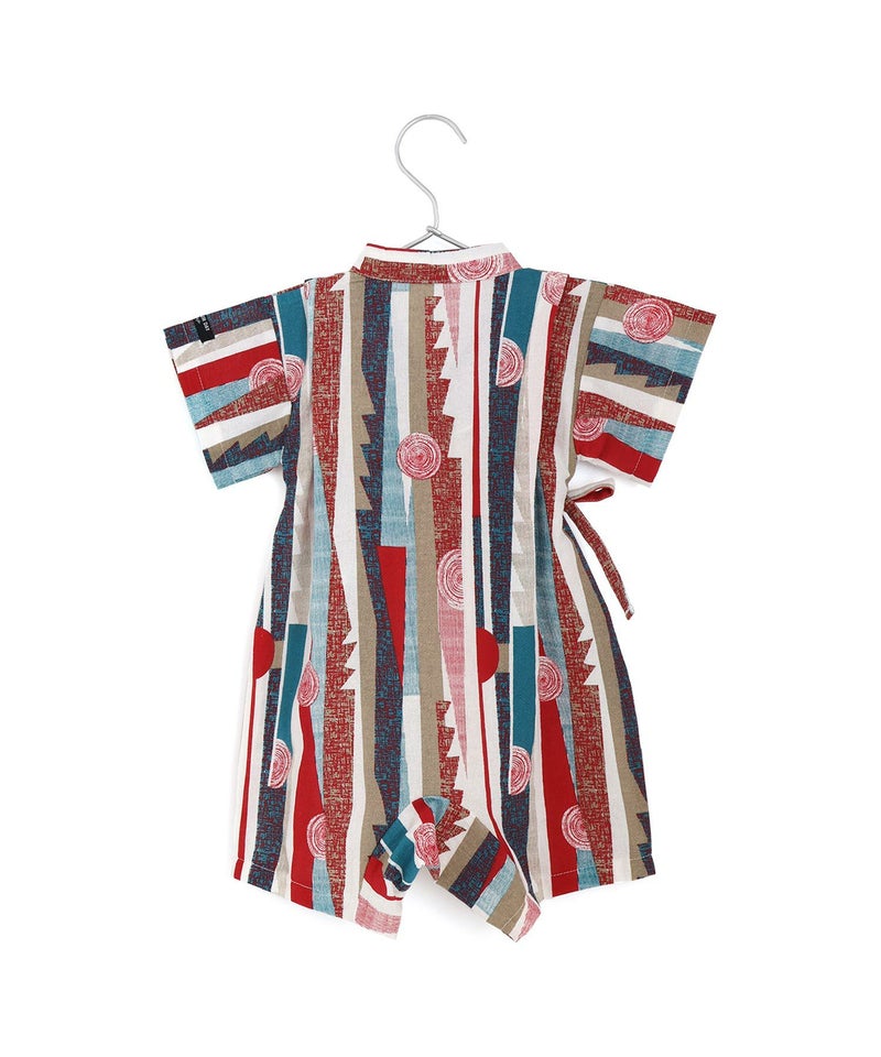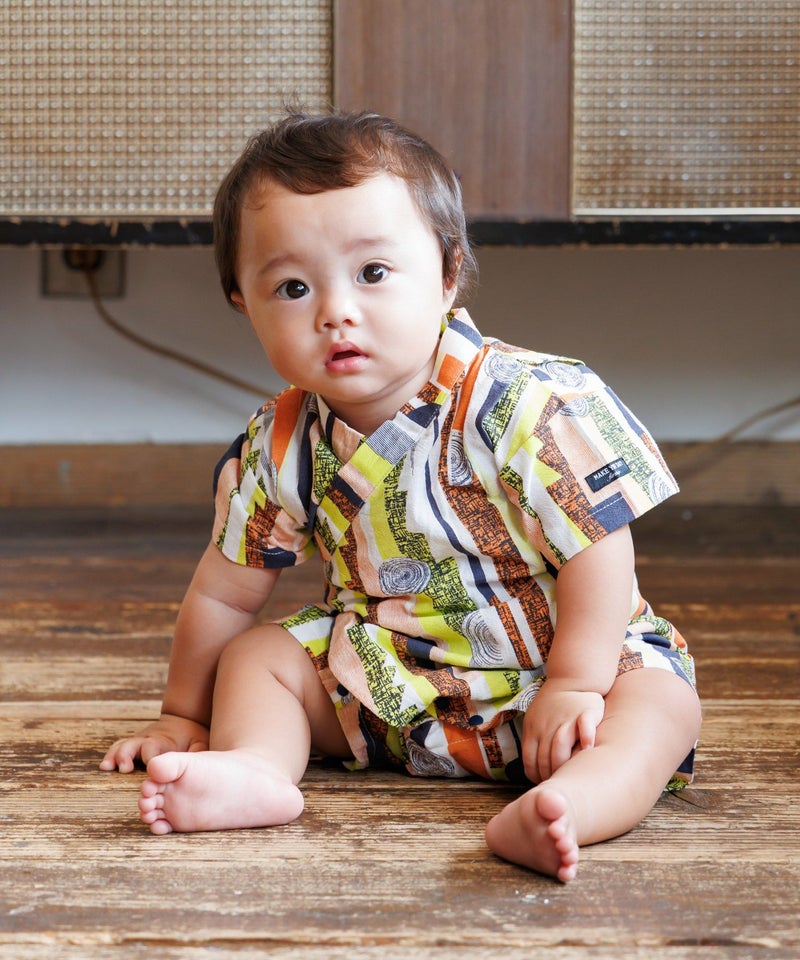 レトロモダンな印象の幾何学柄の甚平ロンパス。