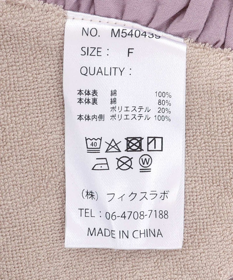本体表)綿100% 本体裏)綿80% ポリエステル20% 本体内側)ポリエステル100%