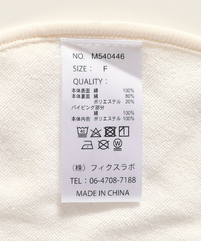 本体表面)綿100% 本体裏綿)綿80% ポリエステル20% パイピング部分)綿100% 本体内側)ポリエステル100%