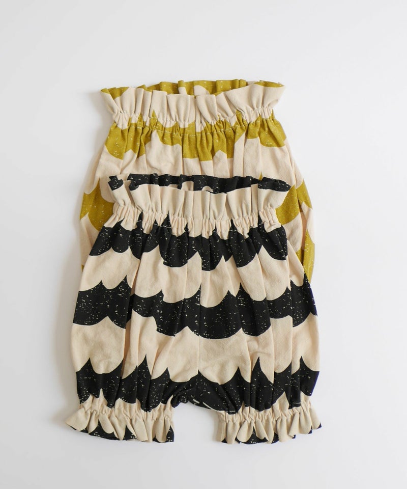 北欧カラーのテキスタイルでおしゃれな着こなしができるベビーパンツです。