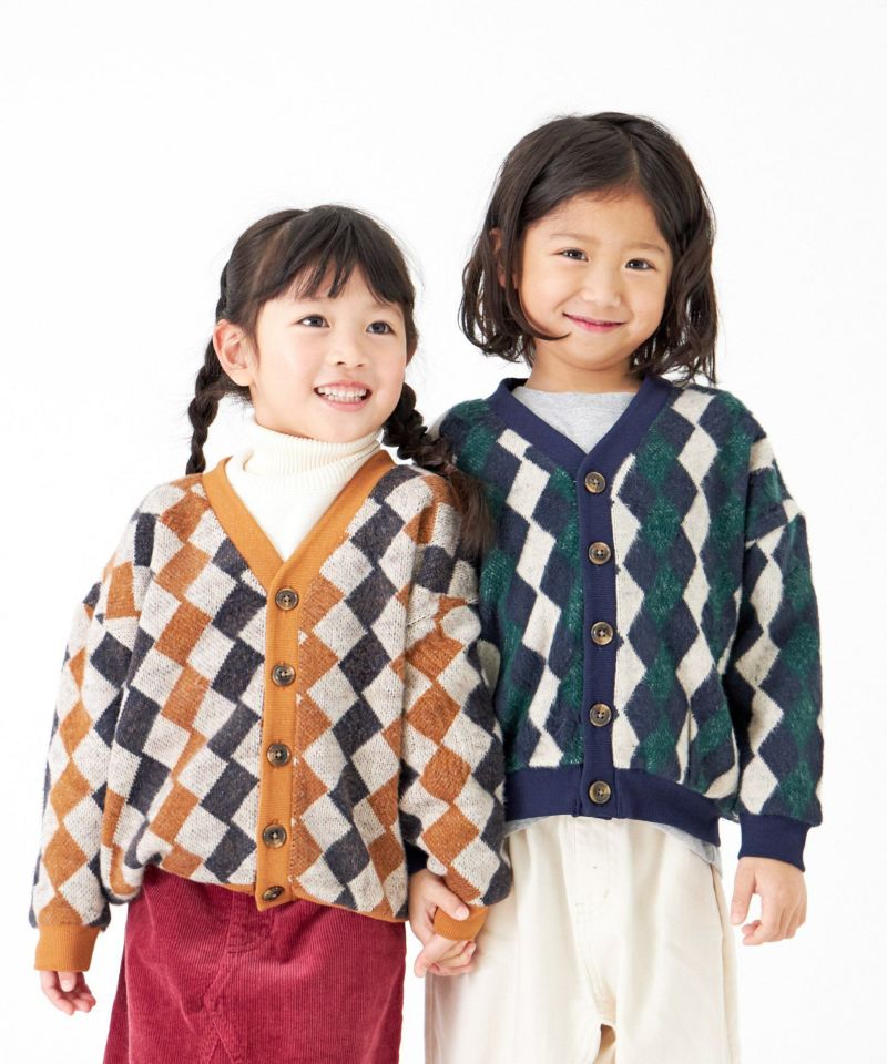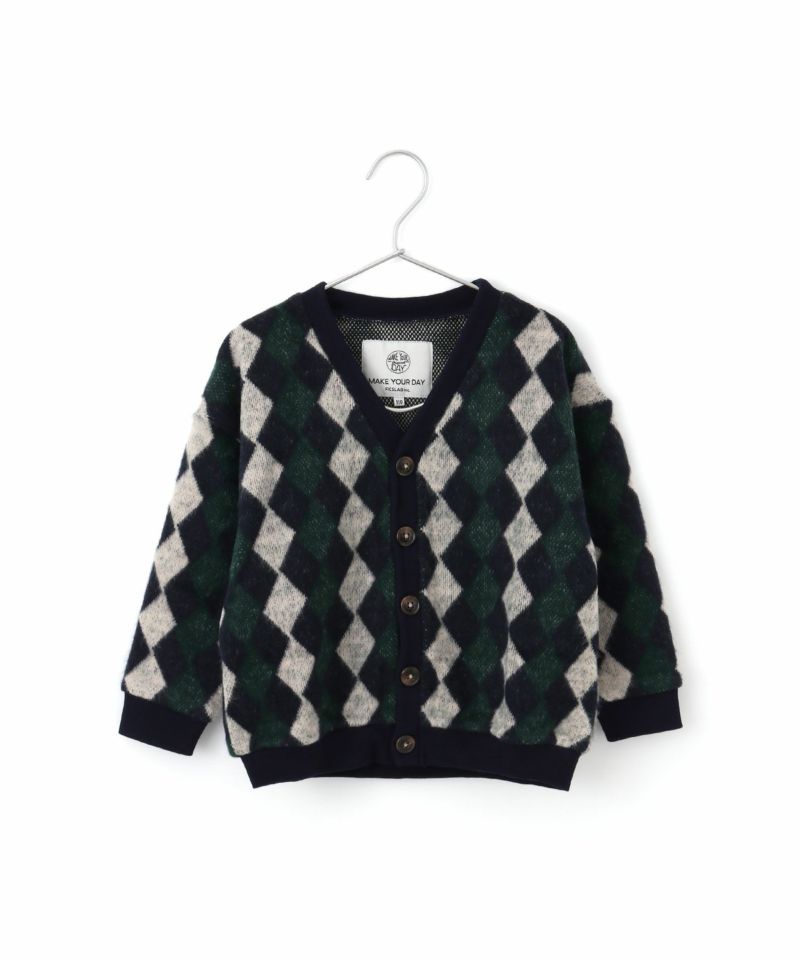 【セール】アーガイルとドットのジャガードカーディガン■80~140cm