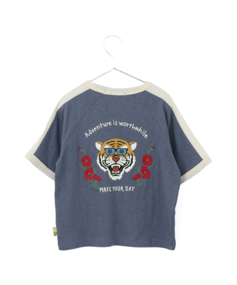 サングラスかけちゃう。お花も背負っちゃう。そんなファンキーなトラさんを背中に描いたスカジャン風Tシャツ。