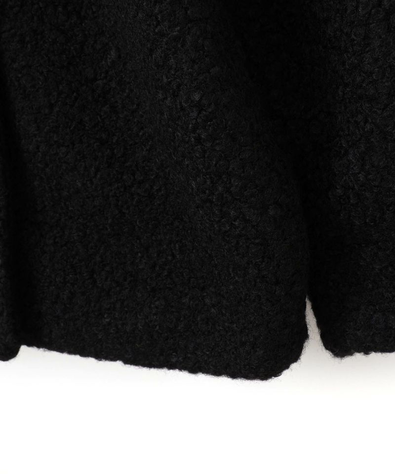 くるくるのブークレーを使用したコクーンシルエットのコート。