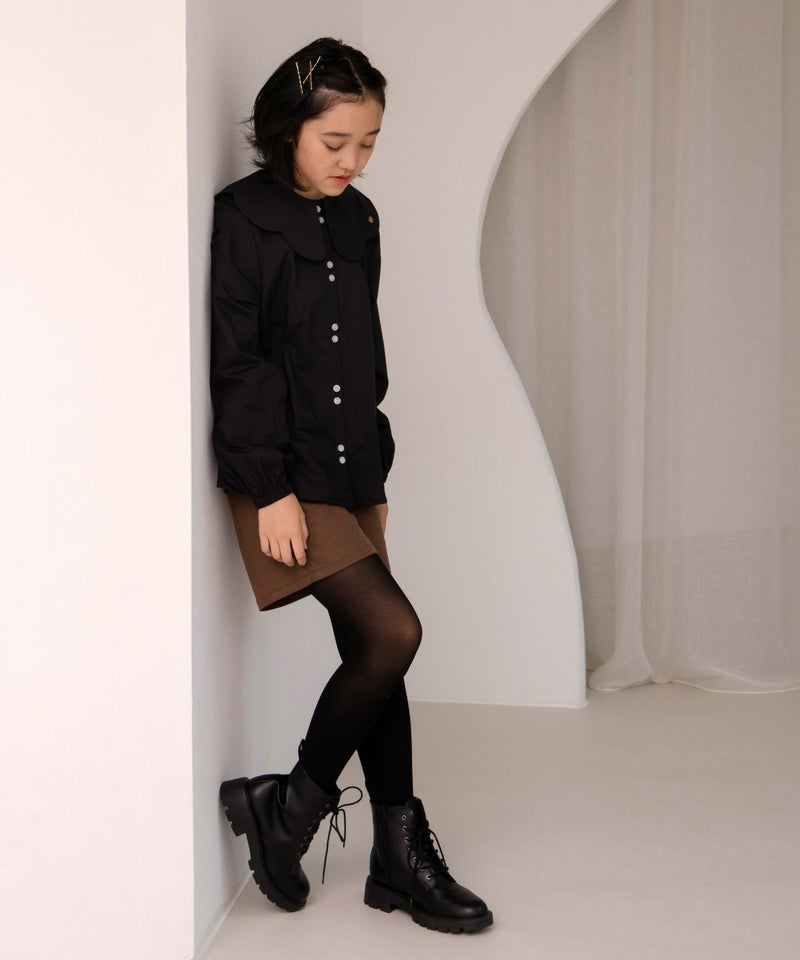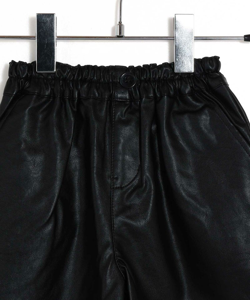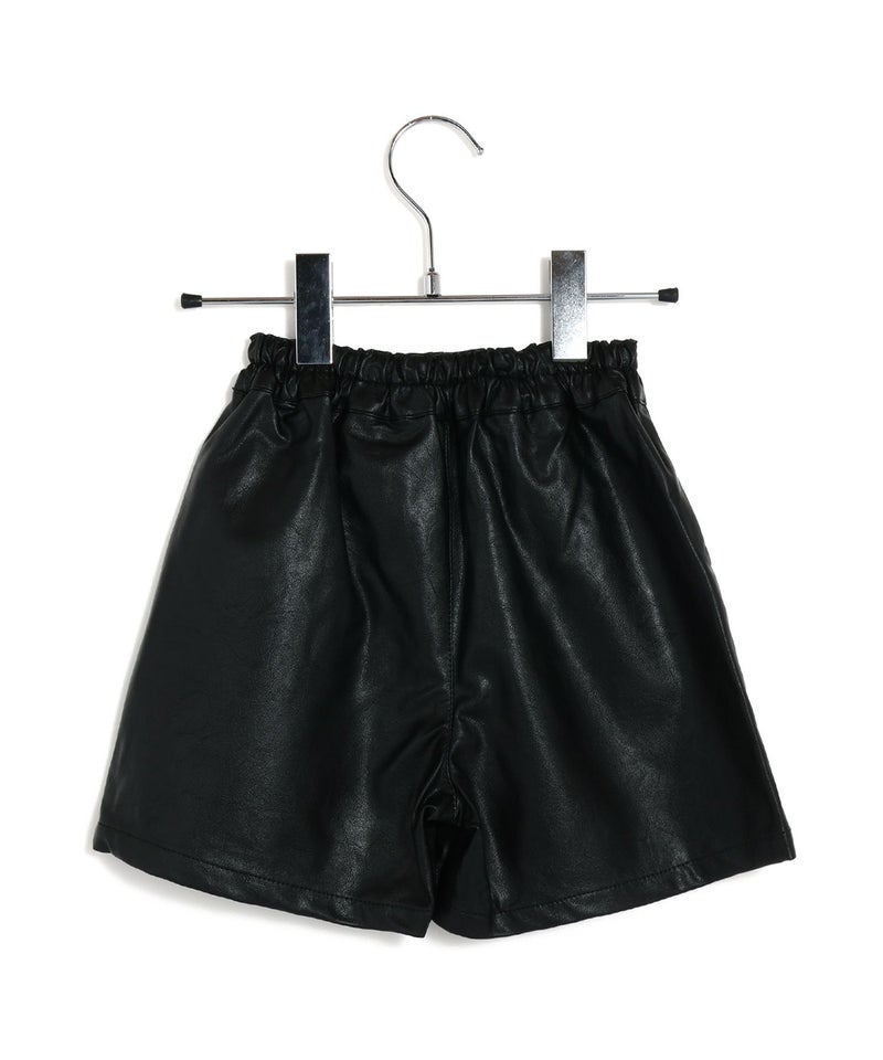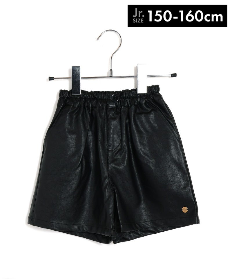 【セール】フェイクレザーとヘリンボーンのショートパンツ■150.160cm