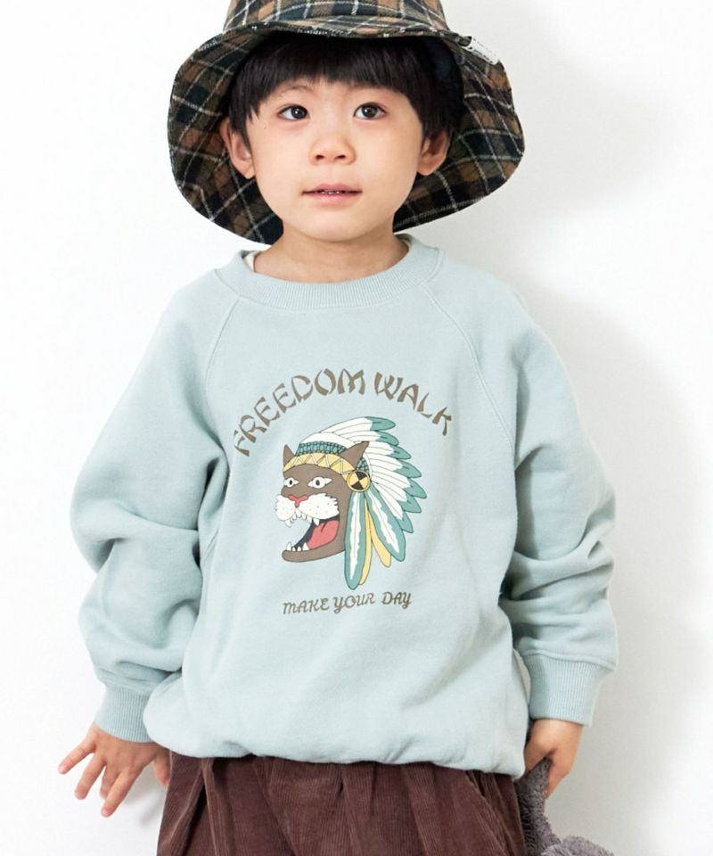プリントに目が行きがちだけど、ラグランの切り替えやドルマンスリーブになっているデザインなど形もかわいいおしゃれなトレーナーです。