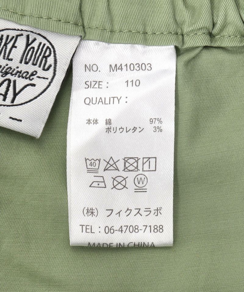 ベージュ・オリーブ・アイボリー●綿97% ポリウレタン3% ブルー●綿74% ポリエステル25% ポリウレタン1%