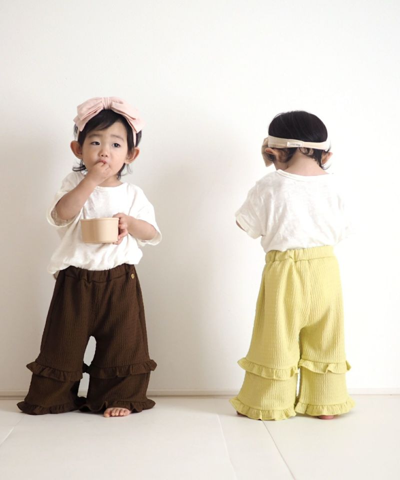 トレンドのぽこぽこした素材のパンツでスタイルアップを叶えてくれるバツグンのシルエット!