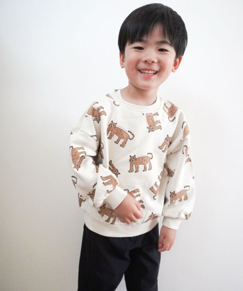 【セール】アートなヒョウ総柄裏毛トレーナー■80~140cm