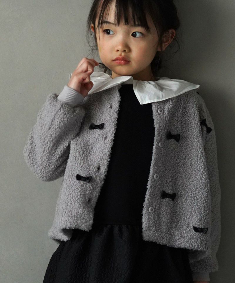 【セール】リボンたっぷりブークレーカーディガン■80~140cm