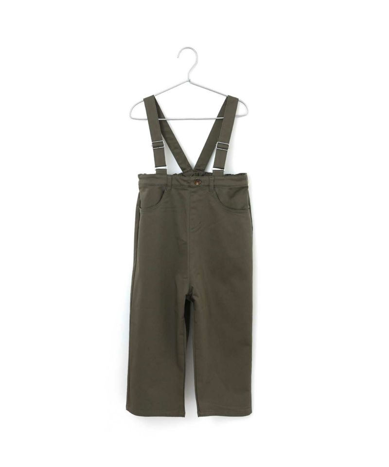 ハイウエストでゆったり着るタイプのサスペンダー付きワイドパンツ。