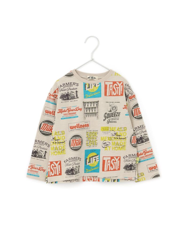 【セール】レトロステッカー総柄長袖Tシャツ■80~140cm