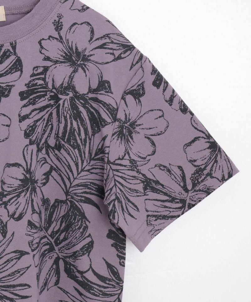【セール】ハイビスカス総柄半袖Tシャツ■80~140cm