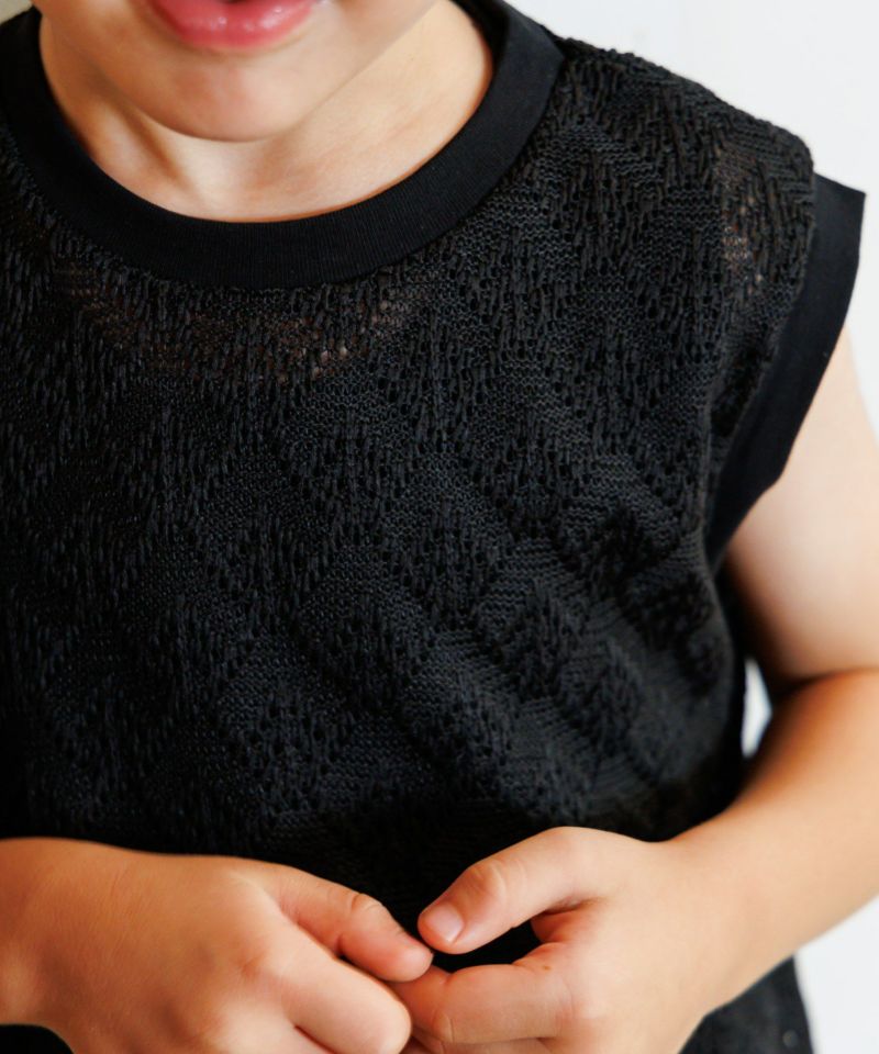 肩を隠すくらいのフレンチスリーブで、ブラックとベージュは男の子にもおすすめ◎