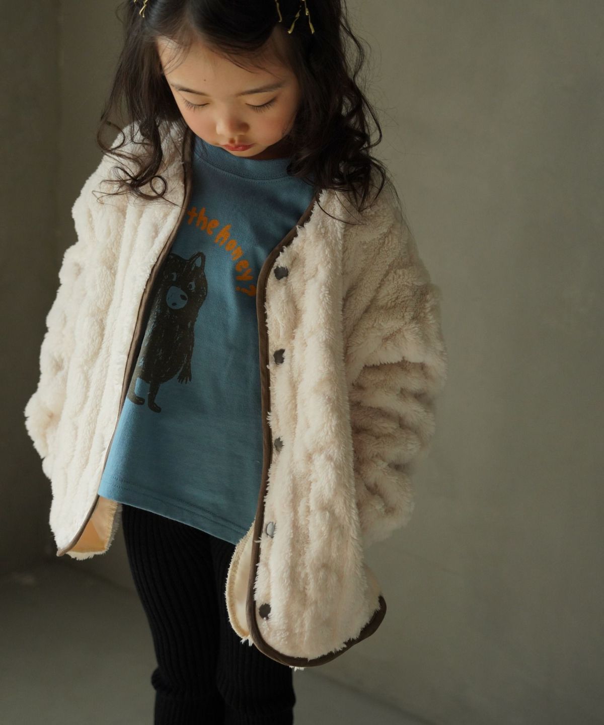 【セール】模様入り両面ボアカーディガン■80~140cm