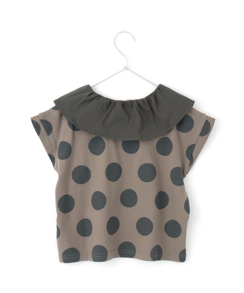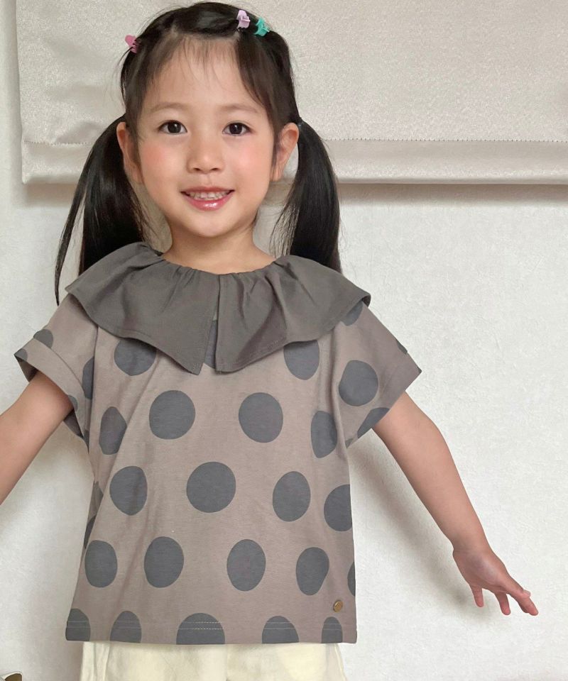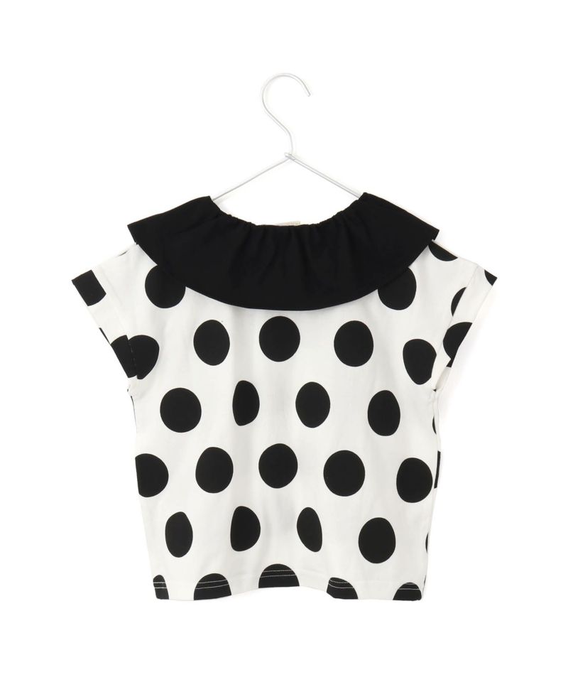 大き目の衿と大き目のドットのバランスがかわいいTシャツ。