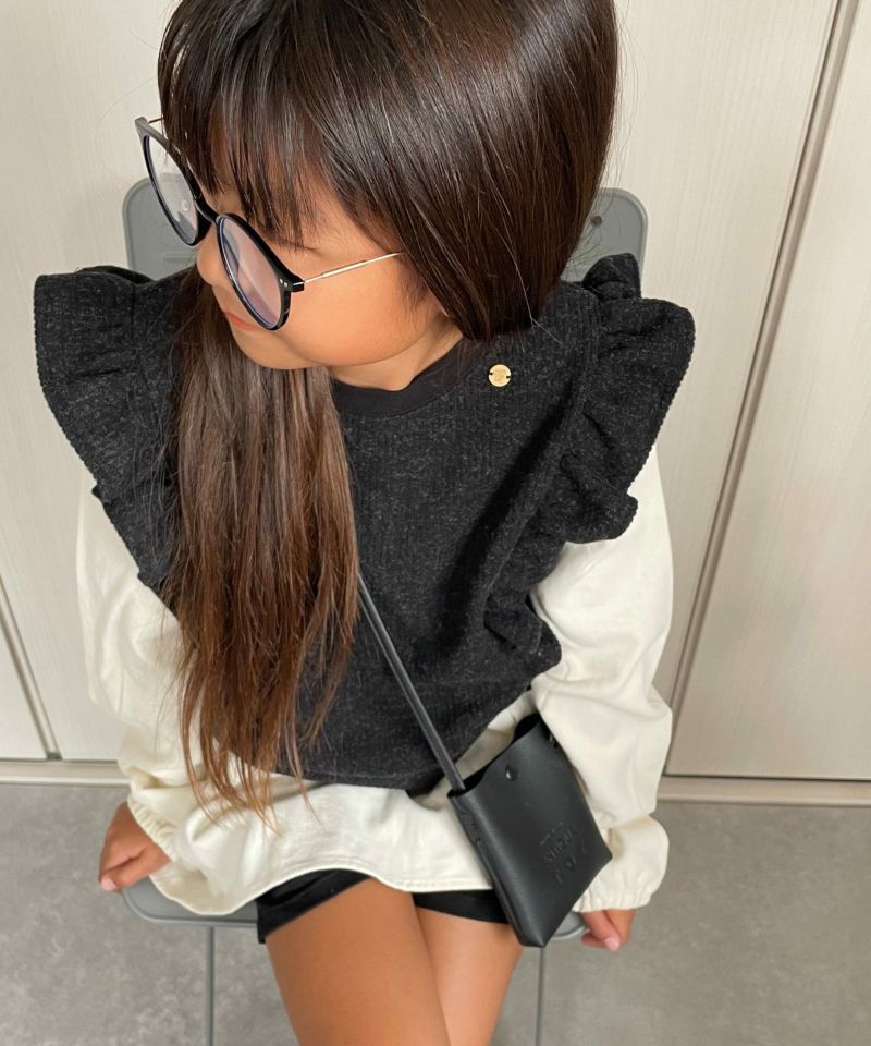 フリルのついたニットベストのレイヤードスタイルを1枚で完結!