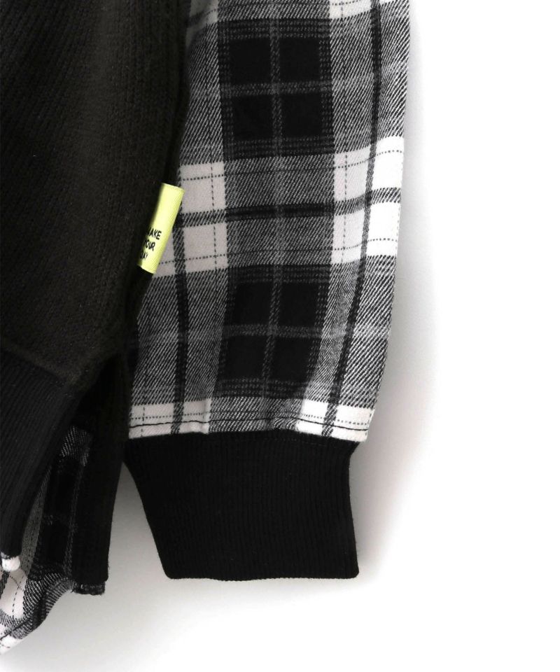 ブラック●前後身頃)アクリル73% ポリエステル27% 左右袖・裾切替部分)ポリエステル70% レーヨン27% ポリウレタン3% リブ部分)綿95% ポリウレタン5% チャコールグレー●前後身頃)アクリル73% ポリエステル27% 左右袖・裾切替部分)ポリエステル90% レーヨン10% リブ部分)綿95% ポリウレタン5%