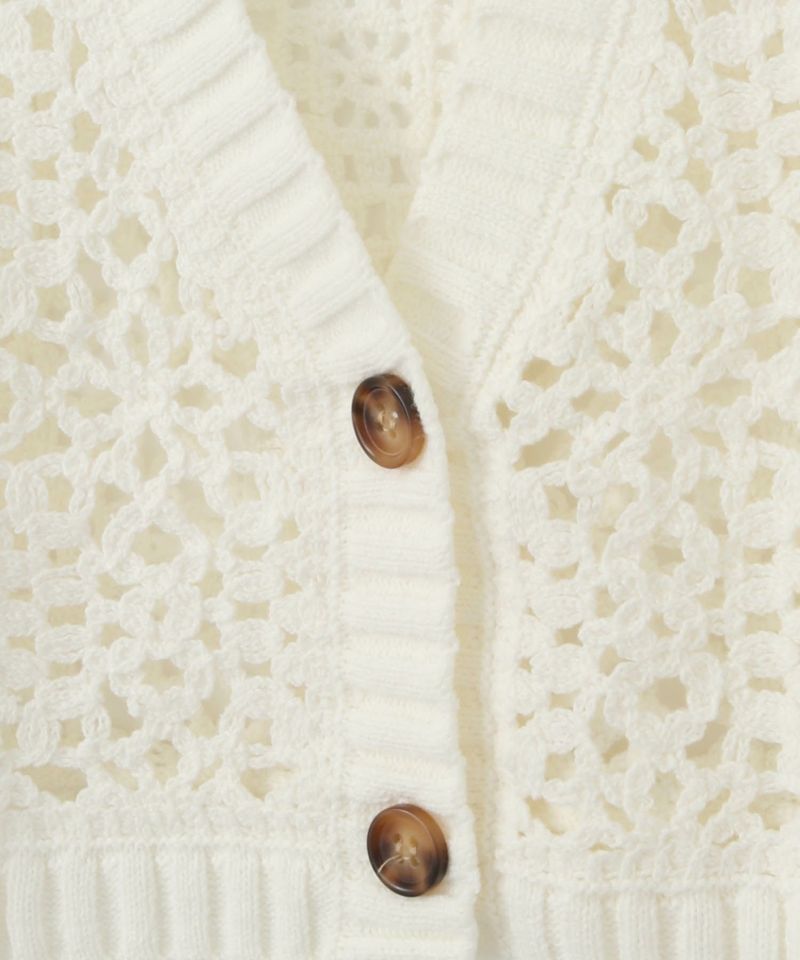 トレンドのかぎ針編みモチーフで出来上がった春らしいカーディガン。