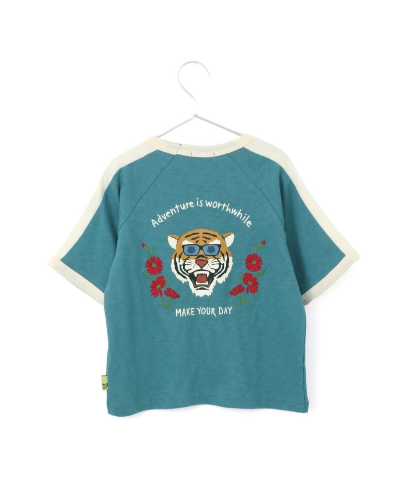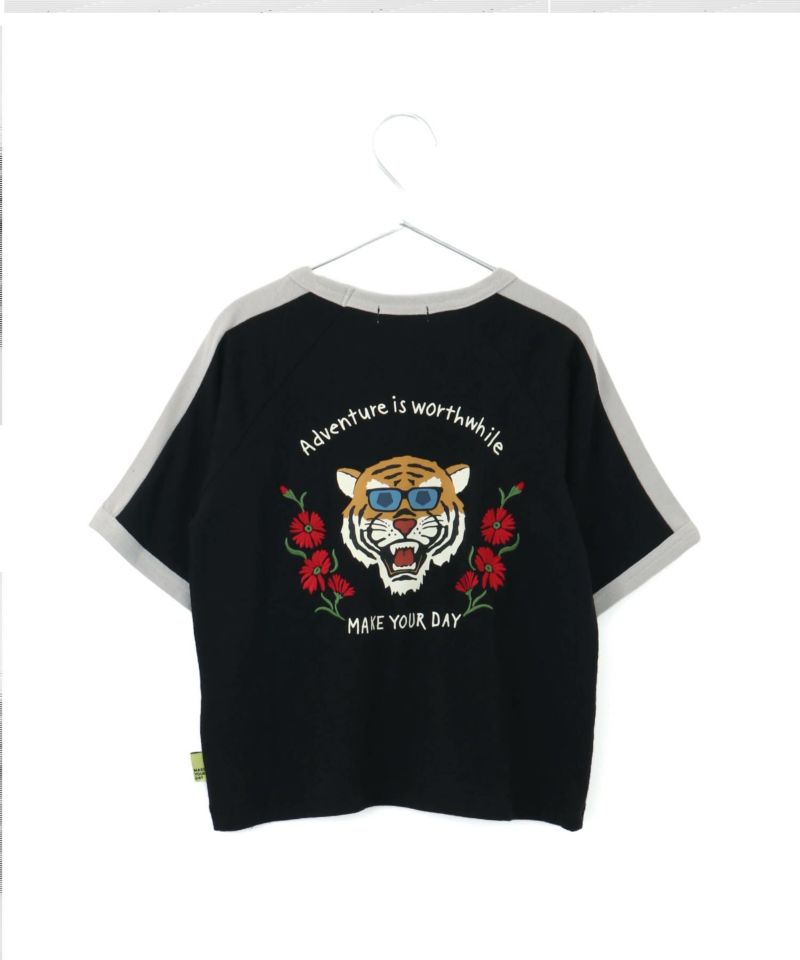 サングラスかけちゃう。お花も背負っちゃう。そんなファンキーなトラさんを背中に描いたスカジャン風Tシャツ。