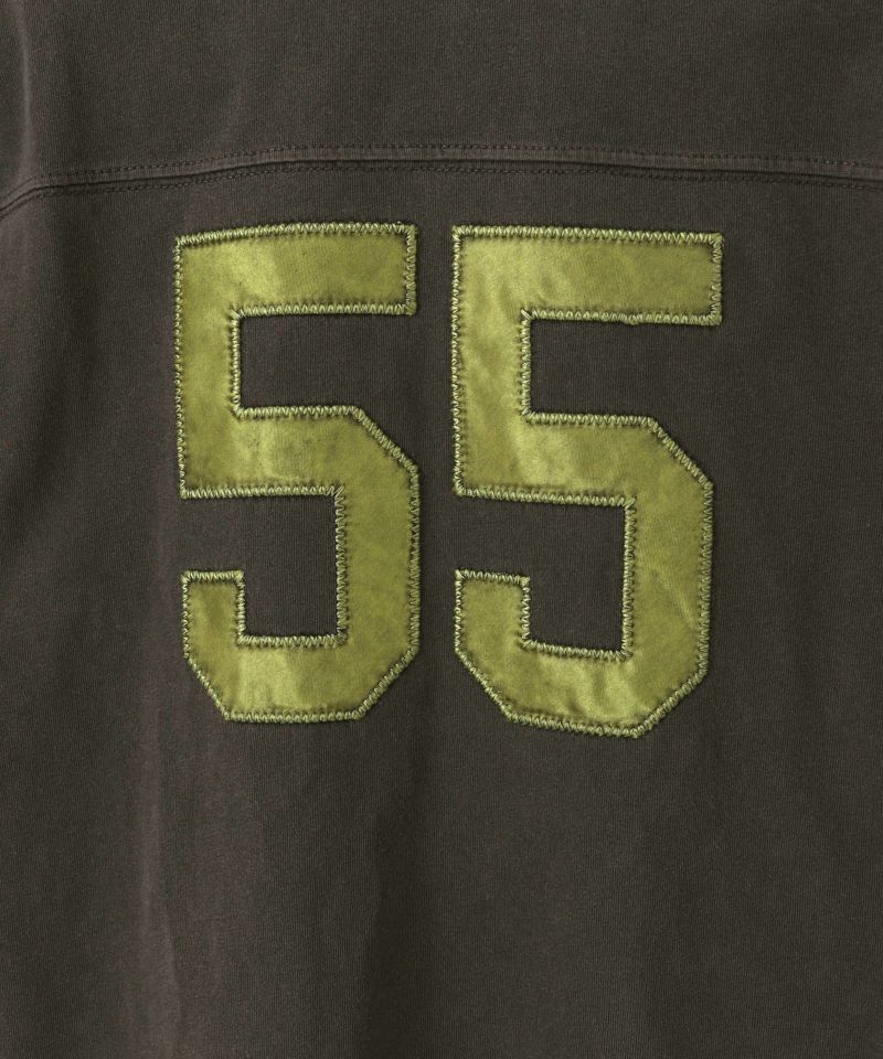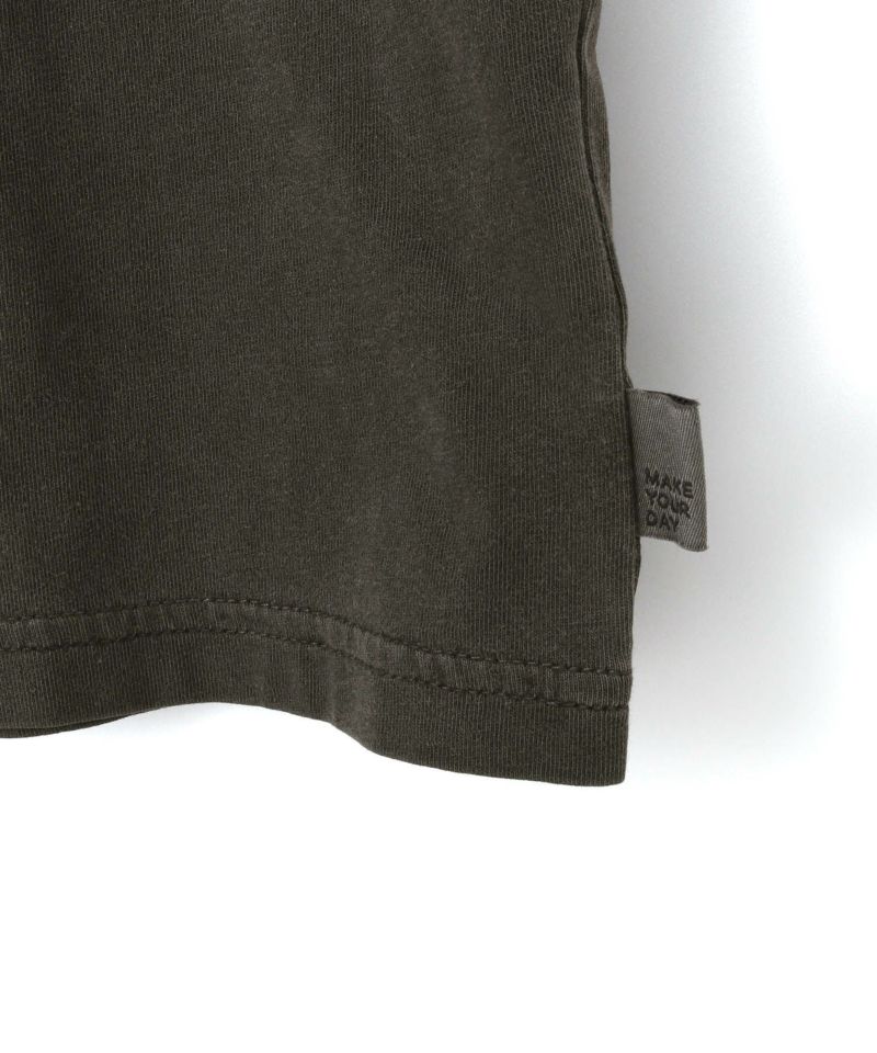 切替部分とアップリケ部分に程よい加工感が出ており、古着っぽくカジュアルな印象のTシャツ。