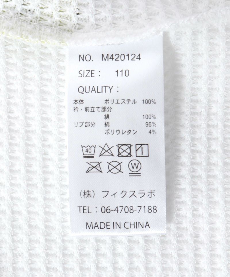 本体)ポリエステル100% リブ部分)綿96% ポリウレタン4% 衿・前立て)綿100%