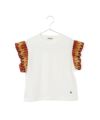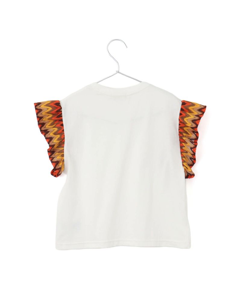 透け感のあるカラフルなフリルがポイントのTシャツ。