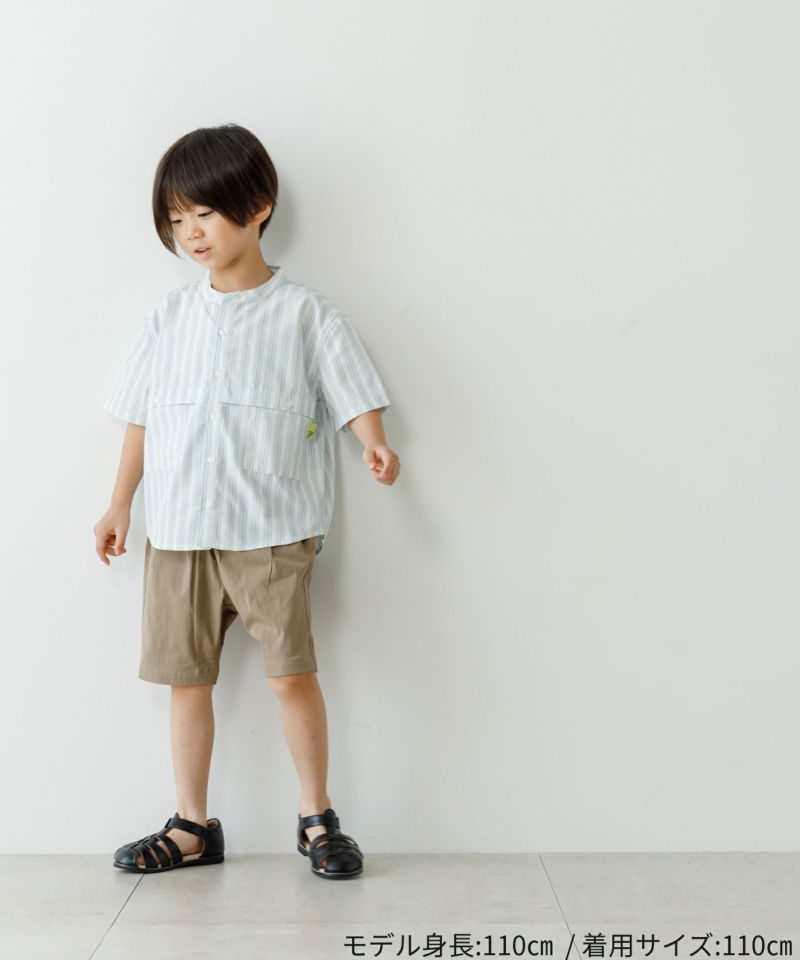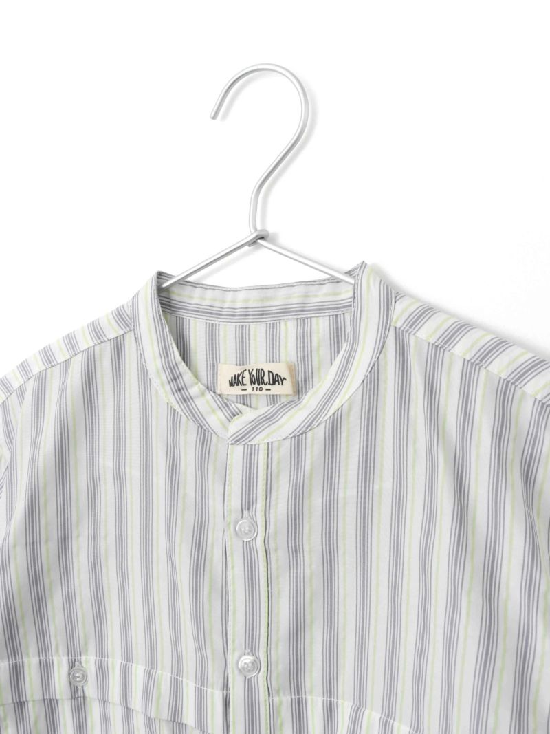 【セール】マルチストライプ半袖バンドカラーシャツ■90~140cm