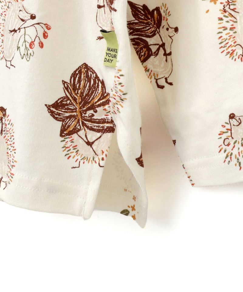 【セール】秋を楽しむハリネズミ総柄長袖Tシャツ■80~140cm