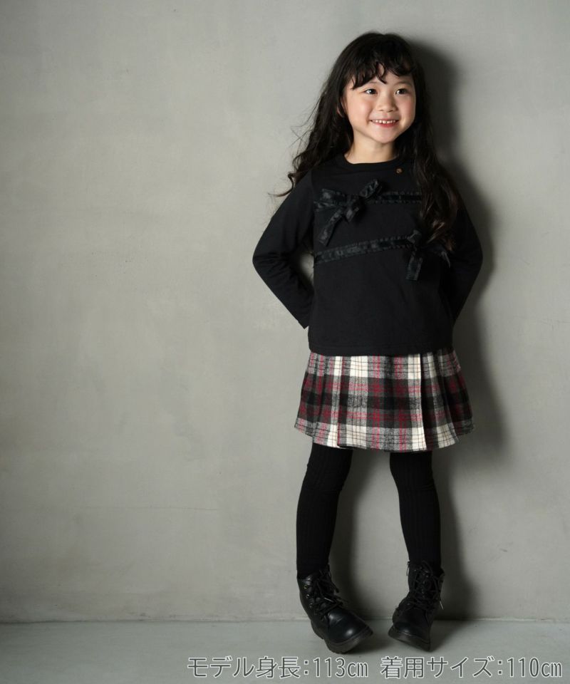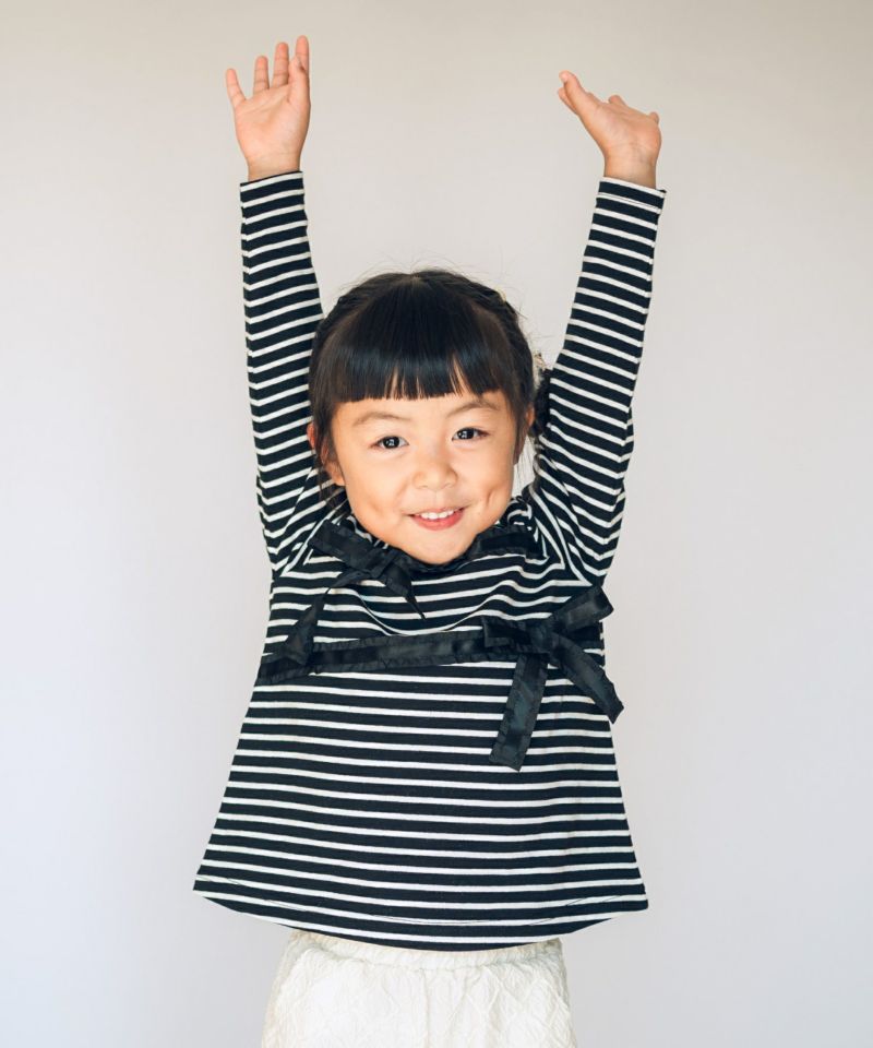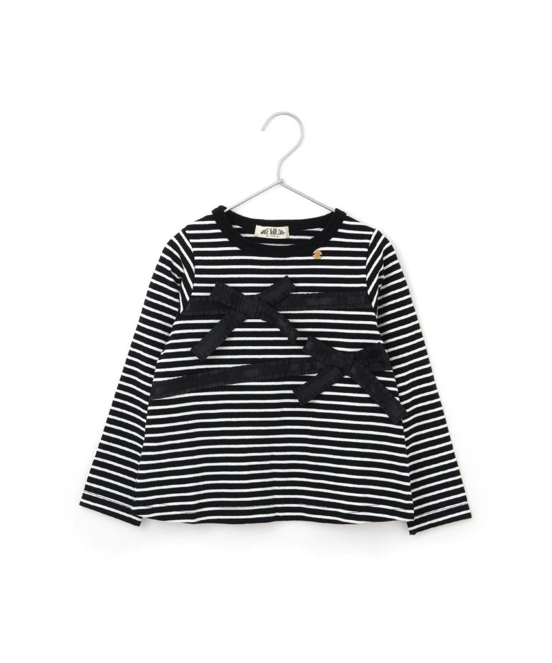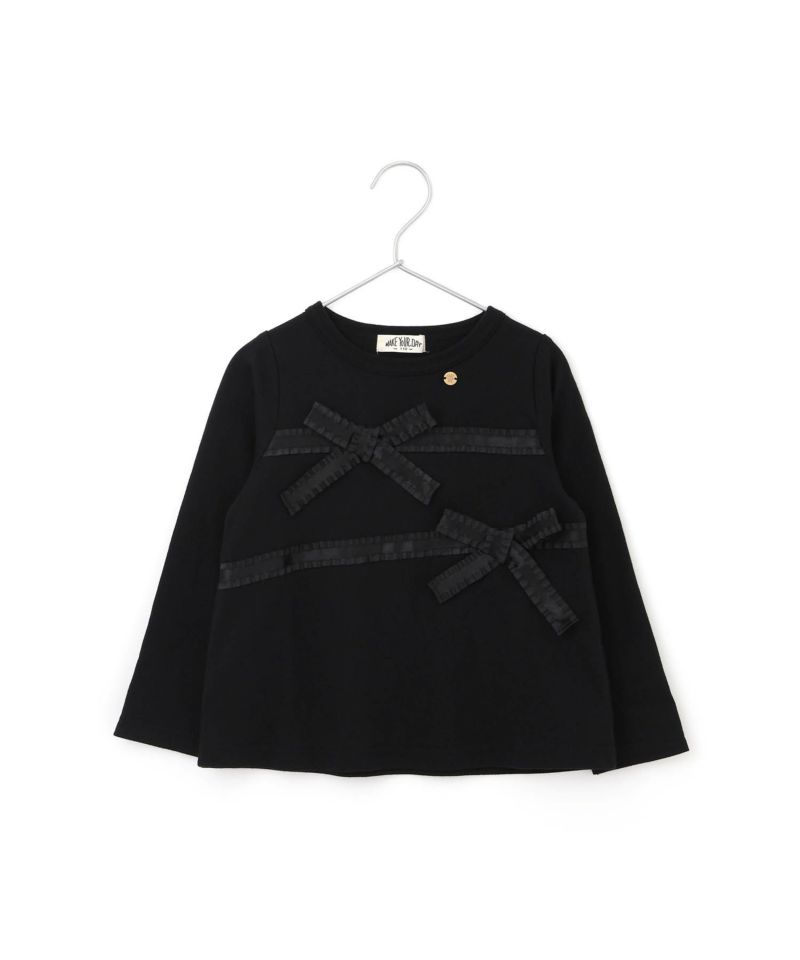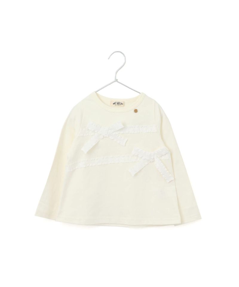 【セール】リボン付きモノトーン長袖Tシャツ■80~140cm