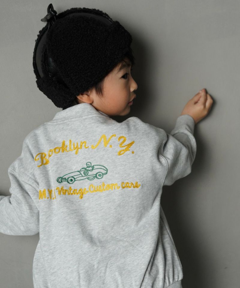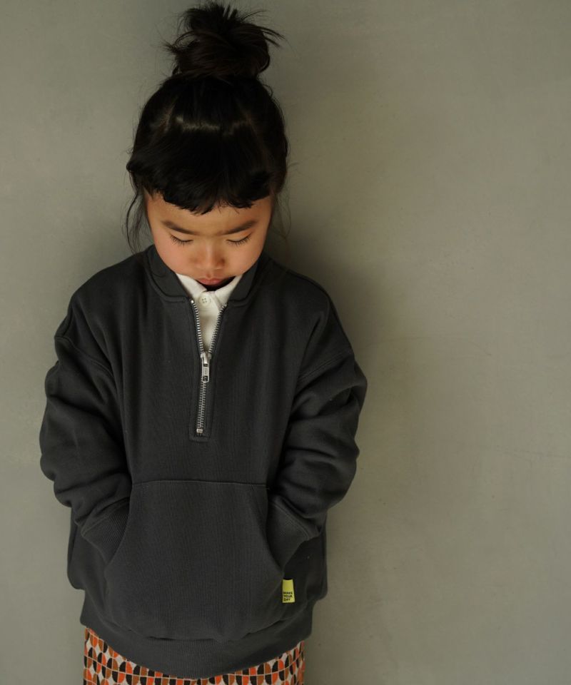 【セール】うしろ刺繍ハーフジップ裏毛トレーナー■80~140cm