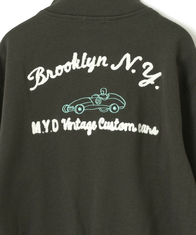 後ろの身頃には立体的なチェーンステッチのロゴと、レトロカーの刺繍が入っています◎