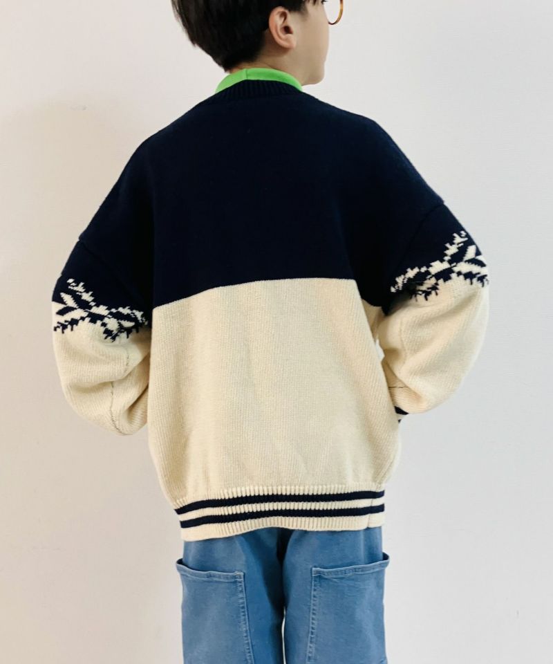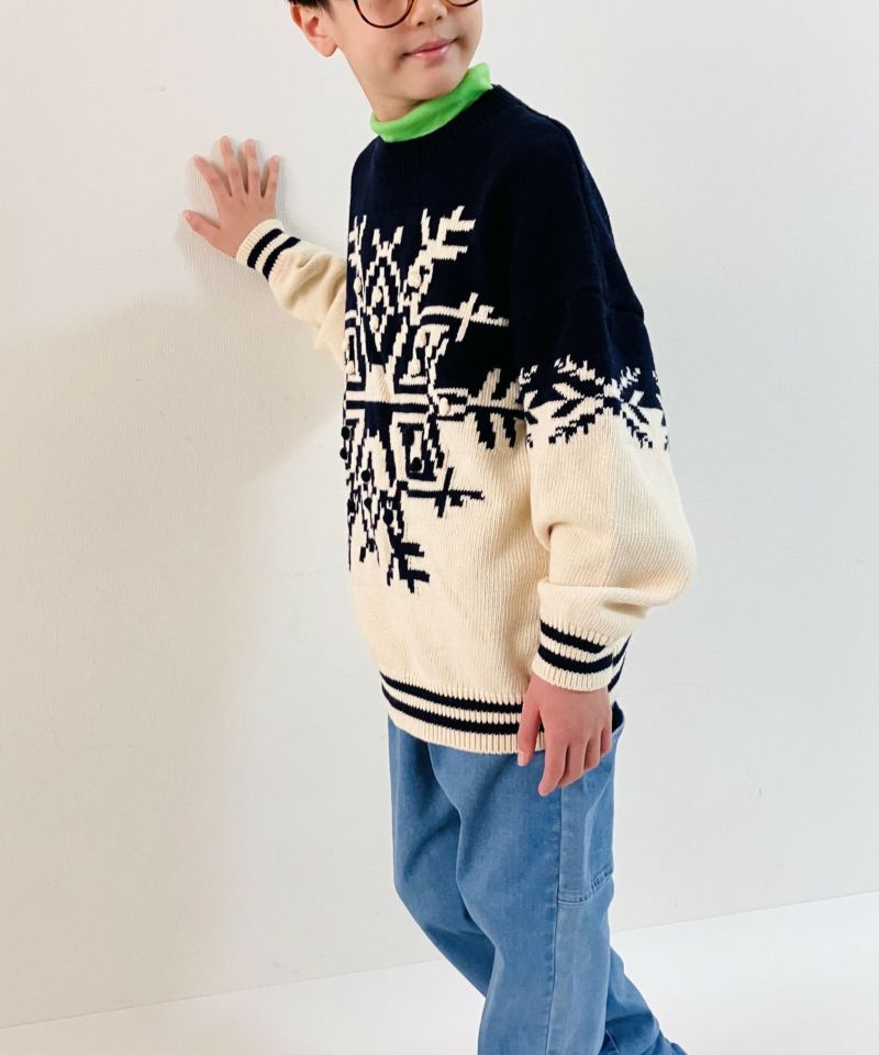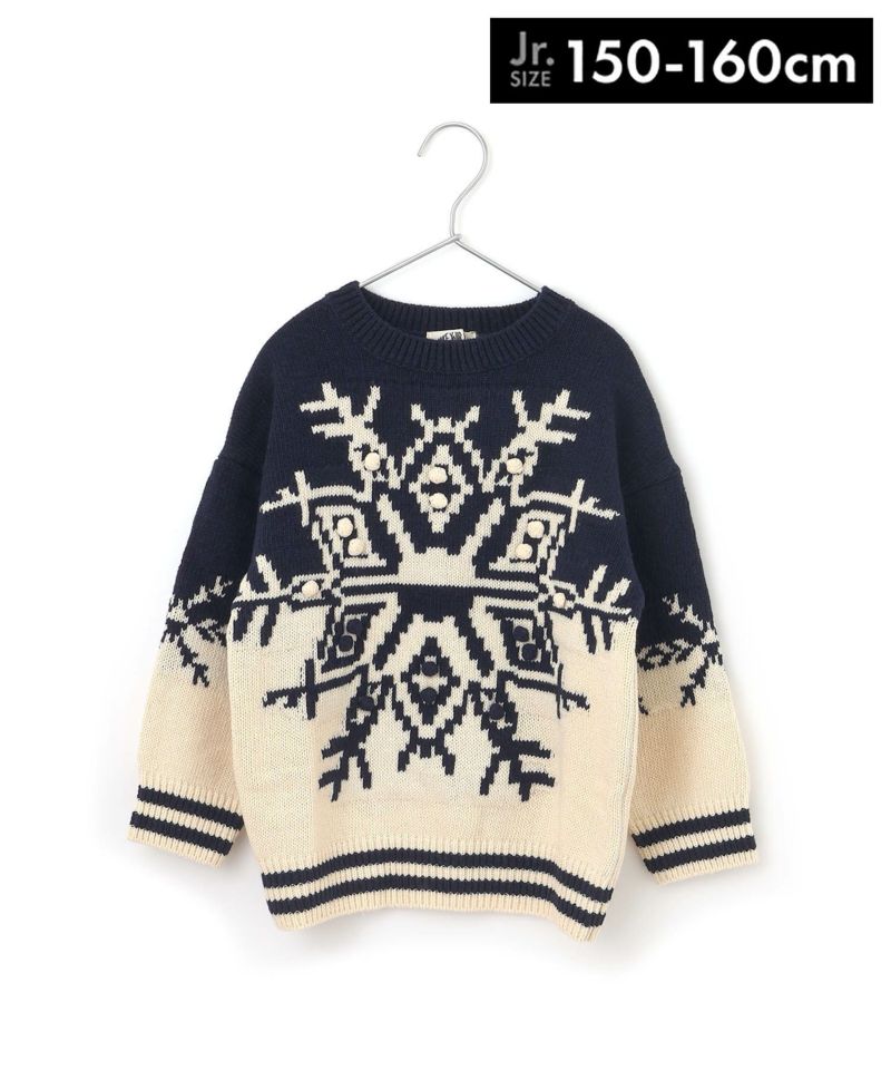 大き目の雪柄に立体的なぽこぽこのボッブルがかわいいセーター。