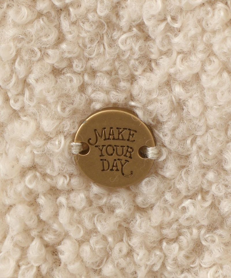 ブークレー糸を使用した、くるくるでポコポコの表面感がかわいいカーディガン。