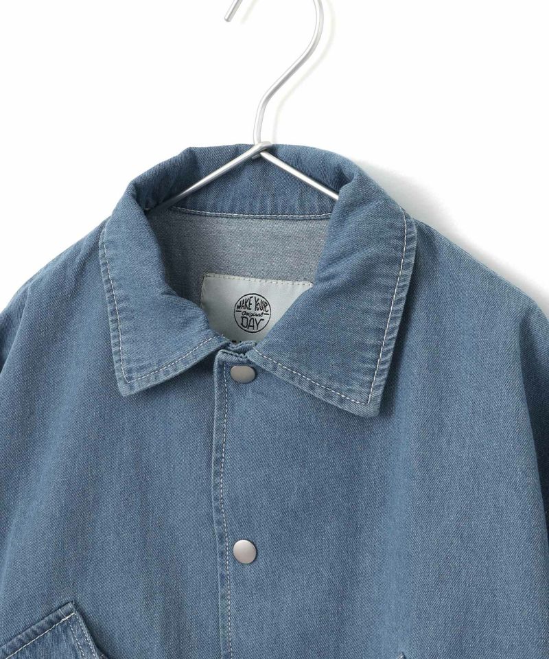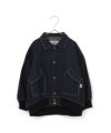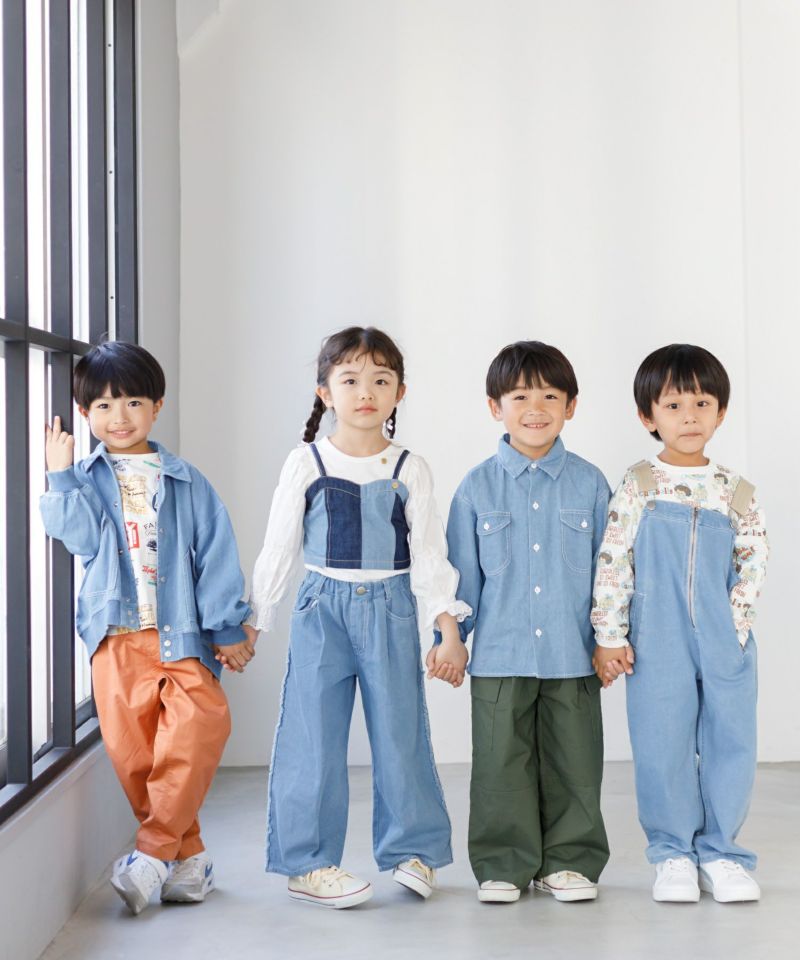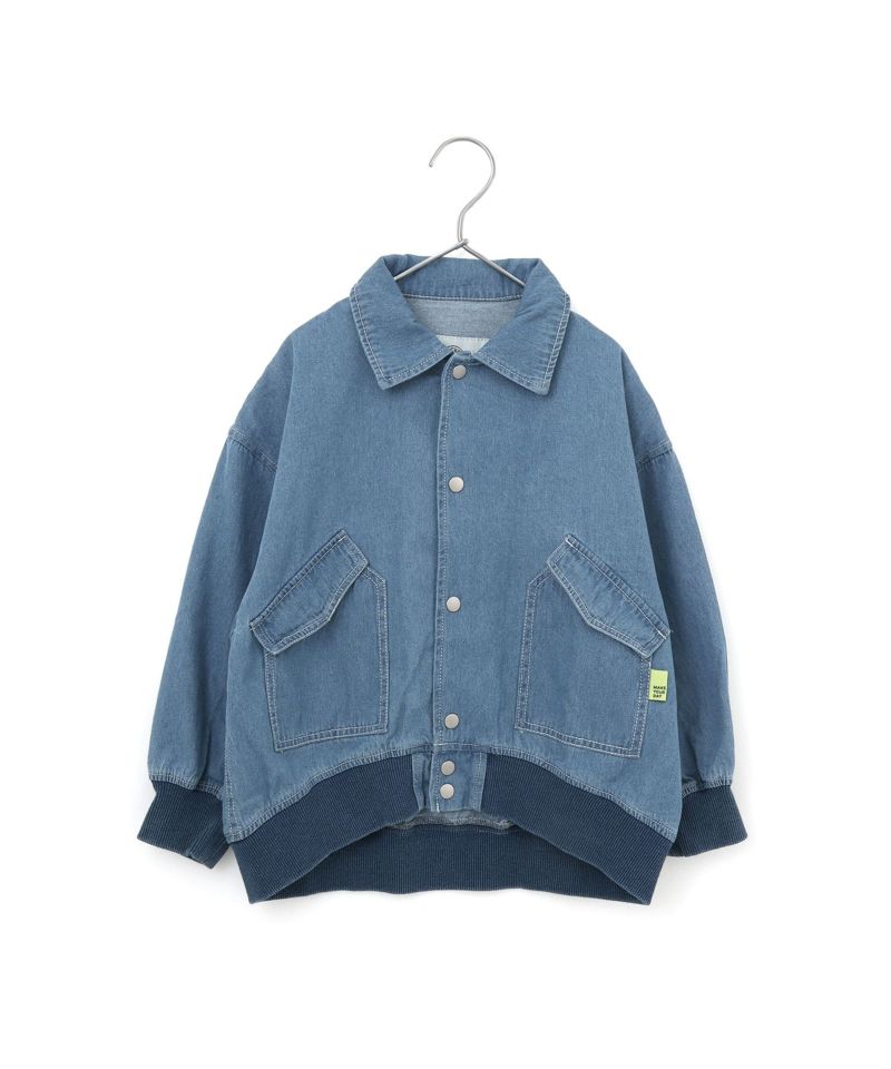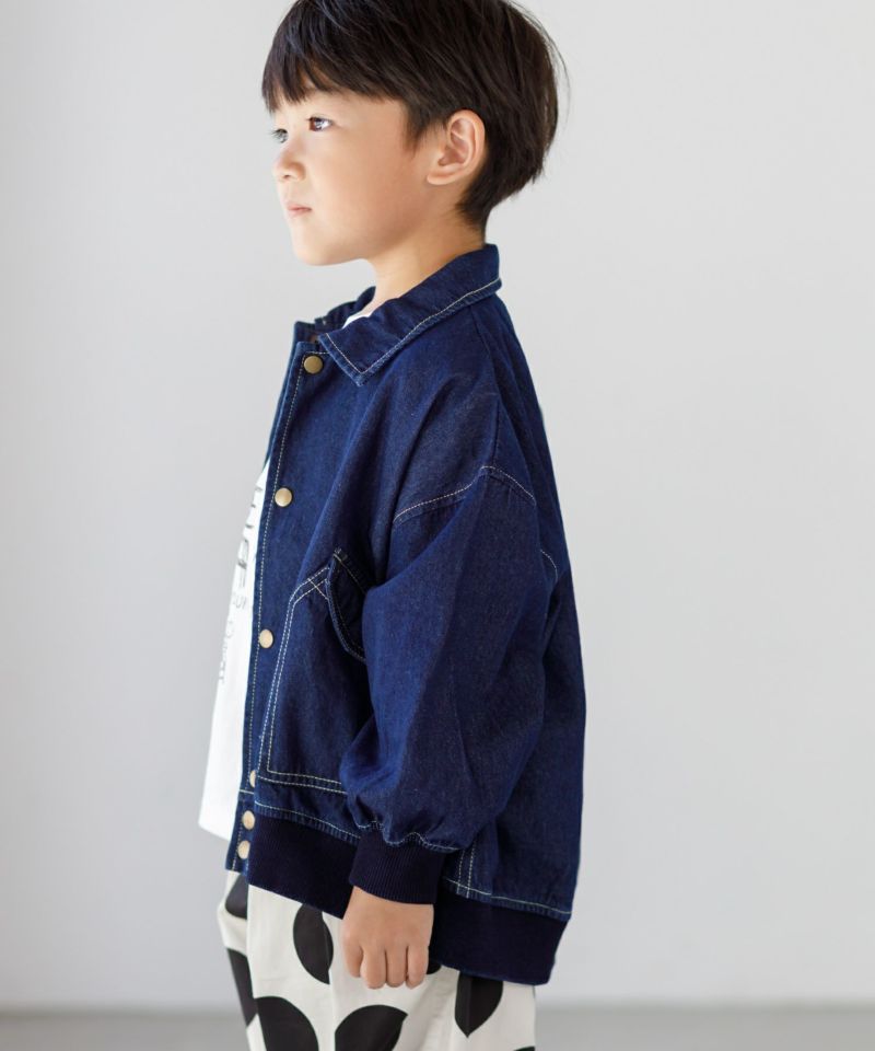 後ろ下がりのデザインがすこし子供らしさを残していて、かっこいいにかわいらしさをプラスしたようなデニムジャケットです。