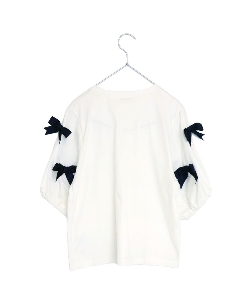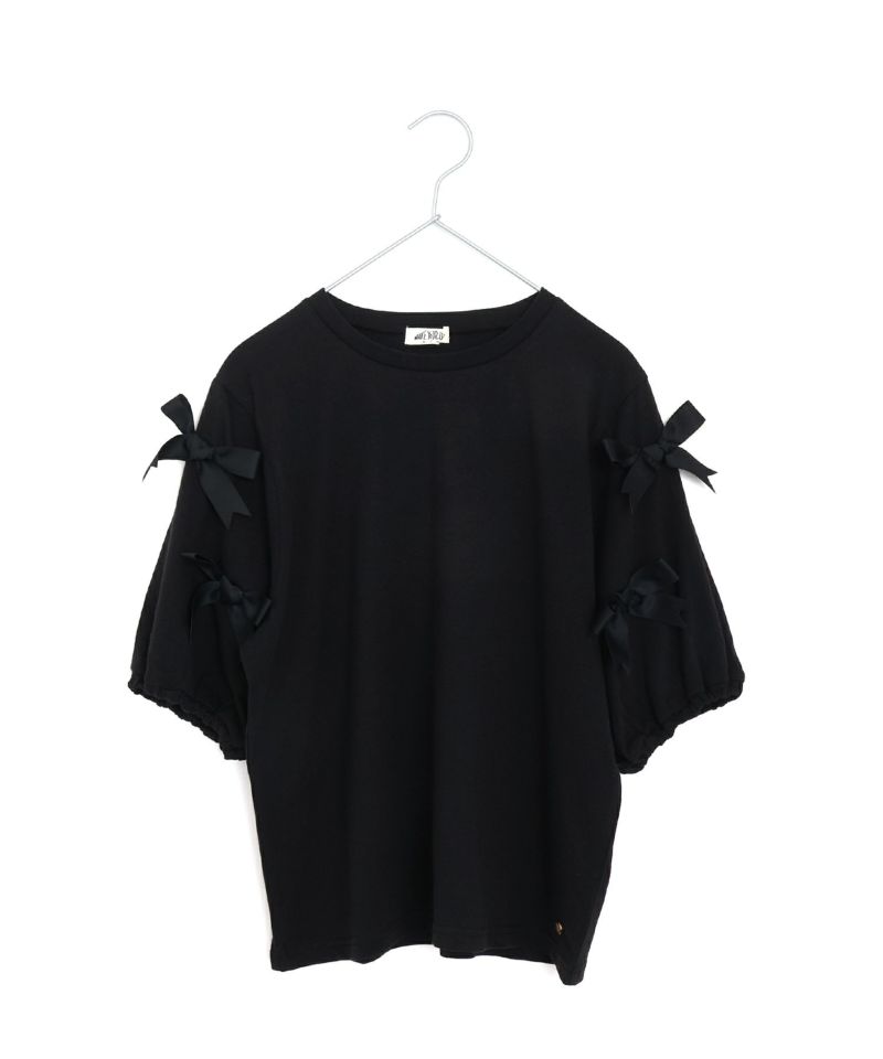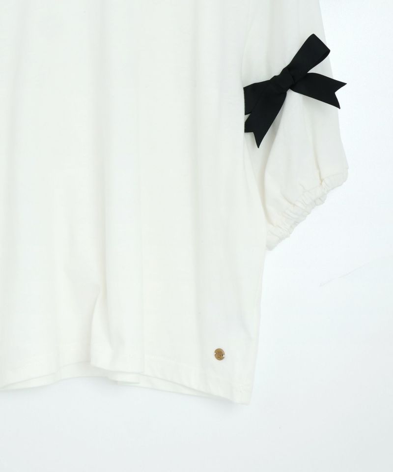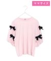 【セール】ママとおそろい リボンパフスリーブ半袖Tシャツ■ママサイズ