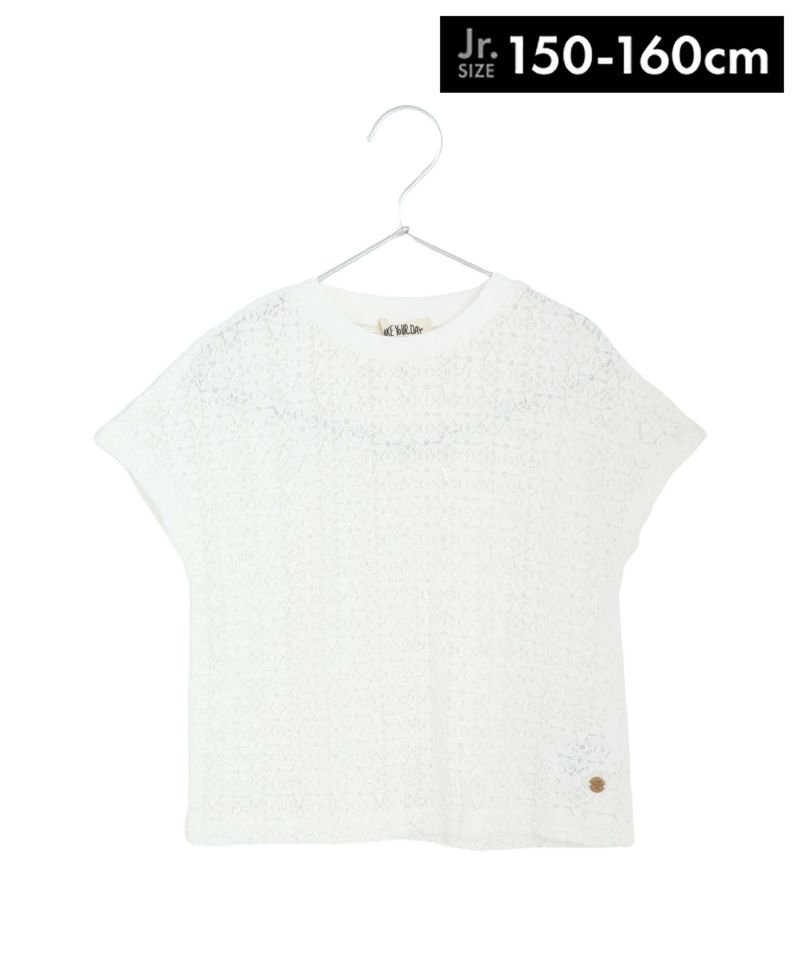 【セール】ママとおそろい フラワーレースフレンチ袖Tシャツ■150.160cm