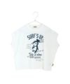 スローなロゴと、ラクガキの文字がプリントされていて肩の力が抜けたようなゆるいTシャツ。