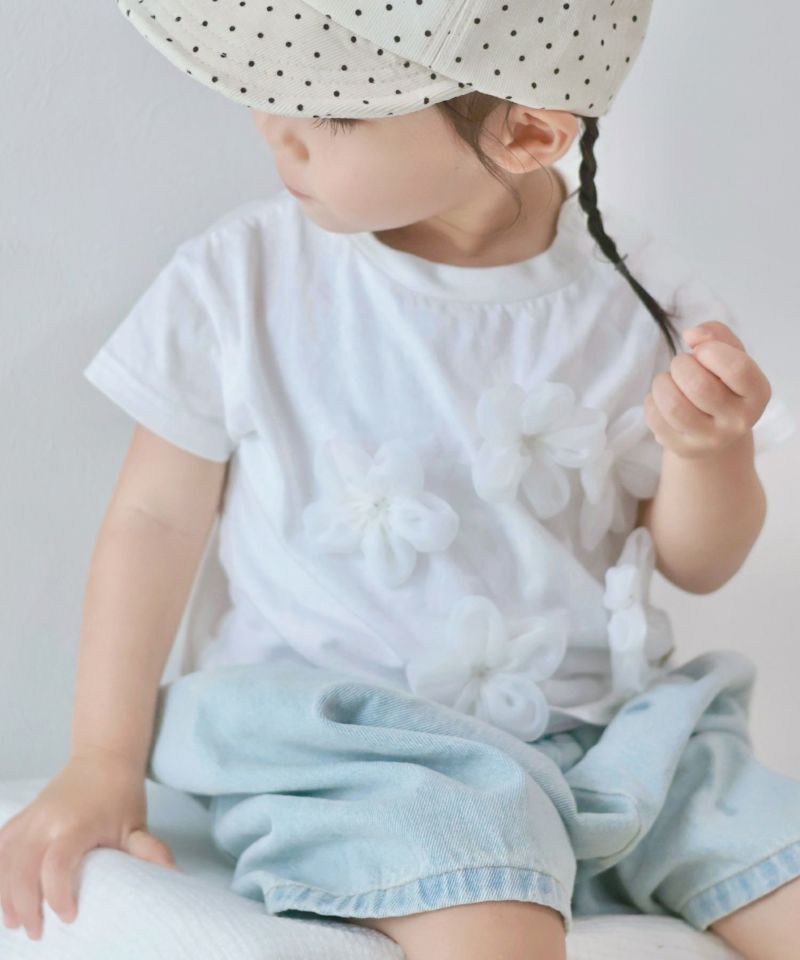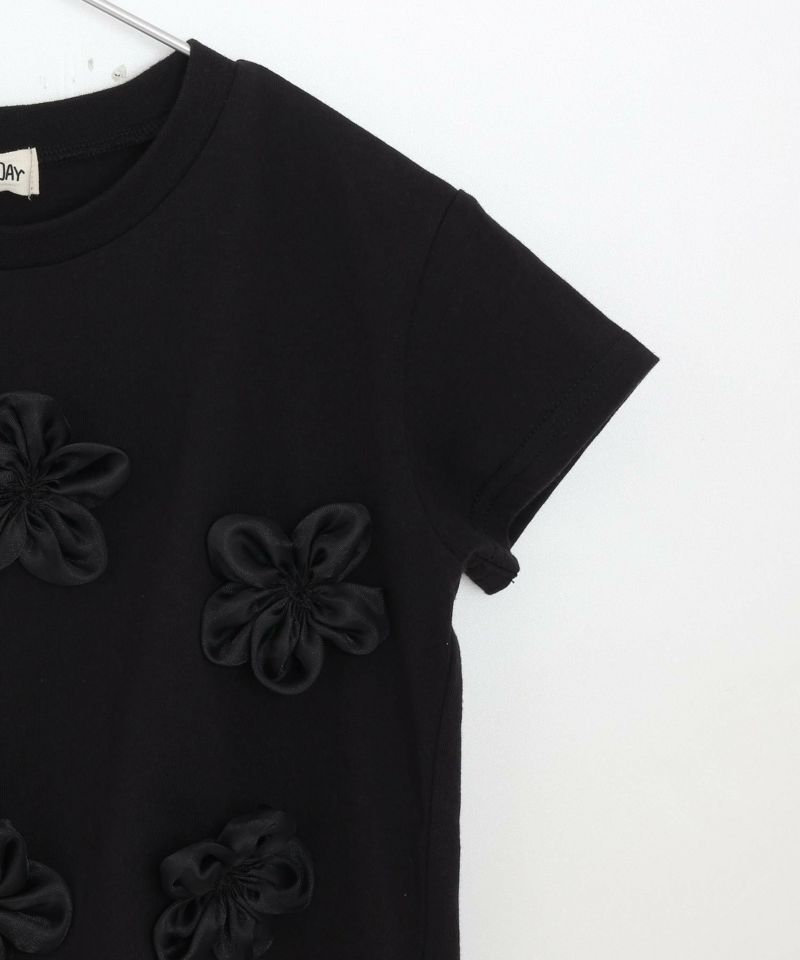 シンプルな無地のTシャツと見せかけて、実はおっきな立体的なお花がぽこぽこどんっとついているインパクトあるTシャツ。