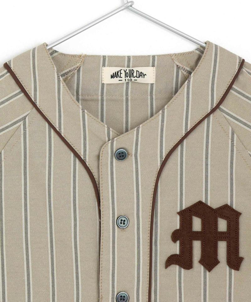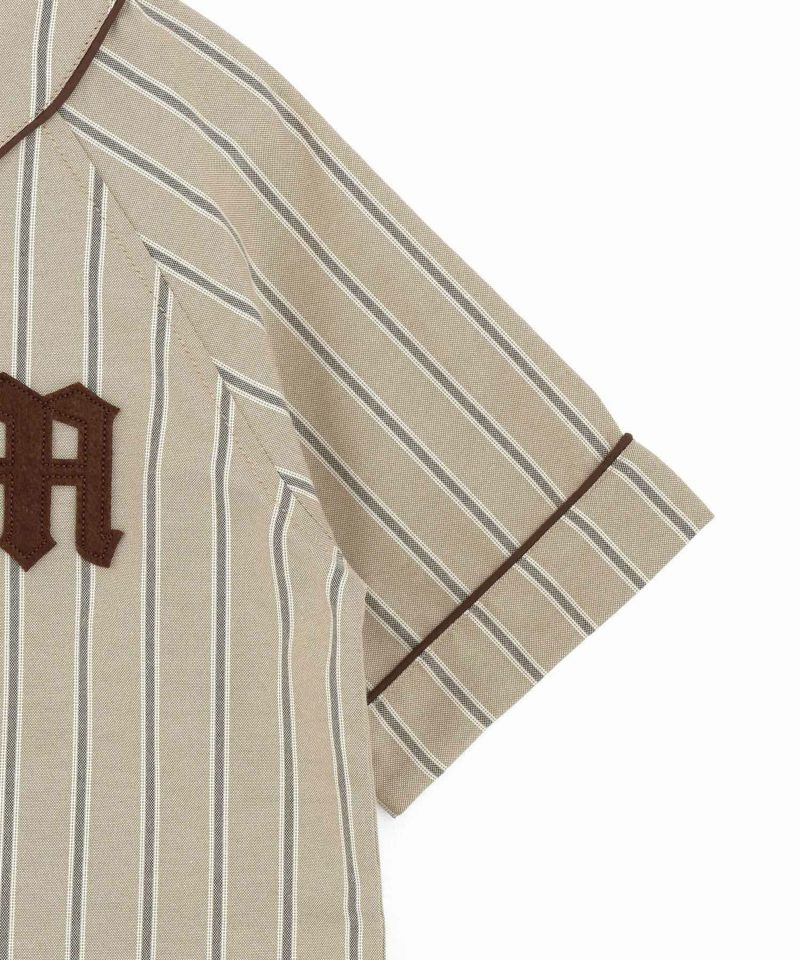 キレイ目のストライプを使用したベースボールシャツ。