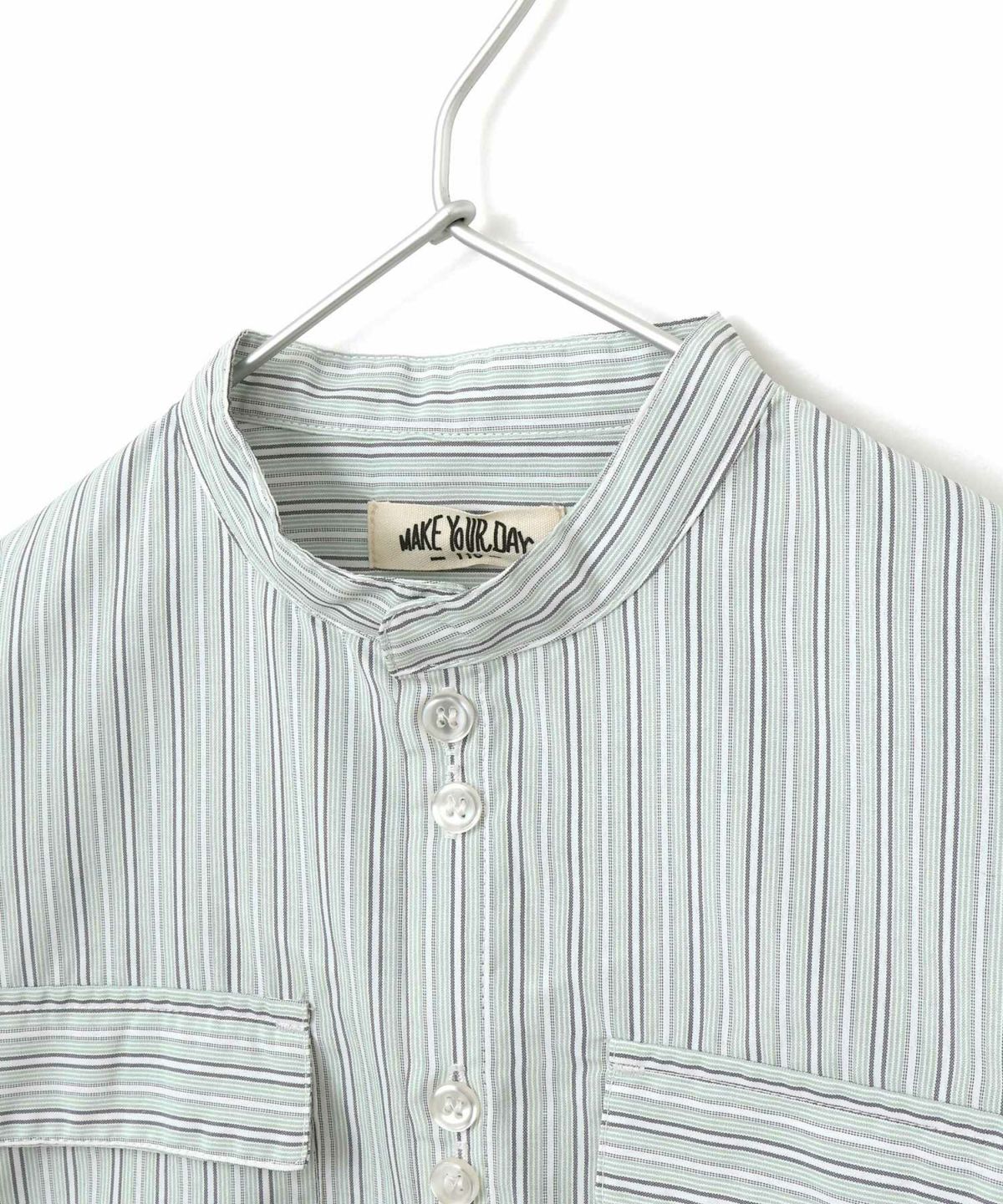 【セール】無地とストライプのバンドカラーシャツ■150.160cm
