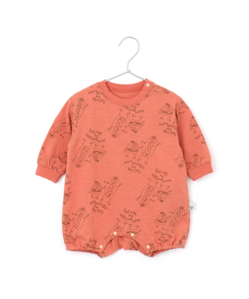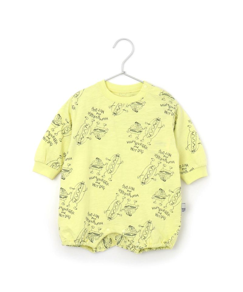 【セール】HUMBERGER&HOTDOG総柄長袖ロンパース