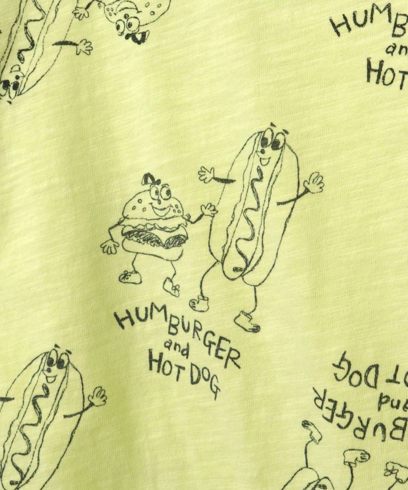 ハンバーガーさんとホットドッグさんがおしゃべりをしているような楽しい総柄。