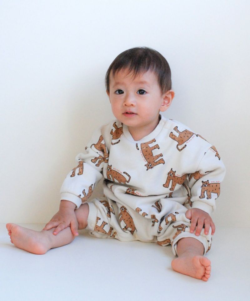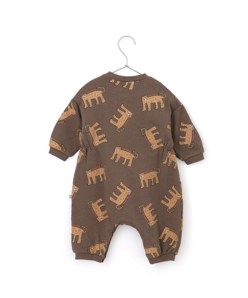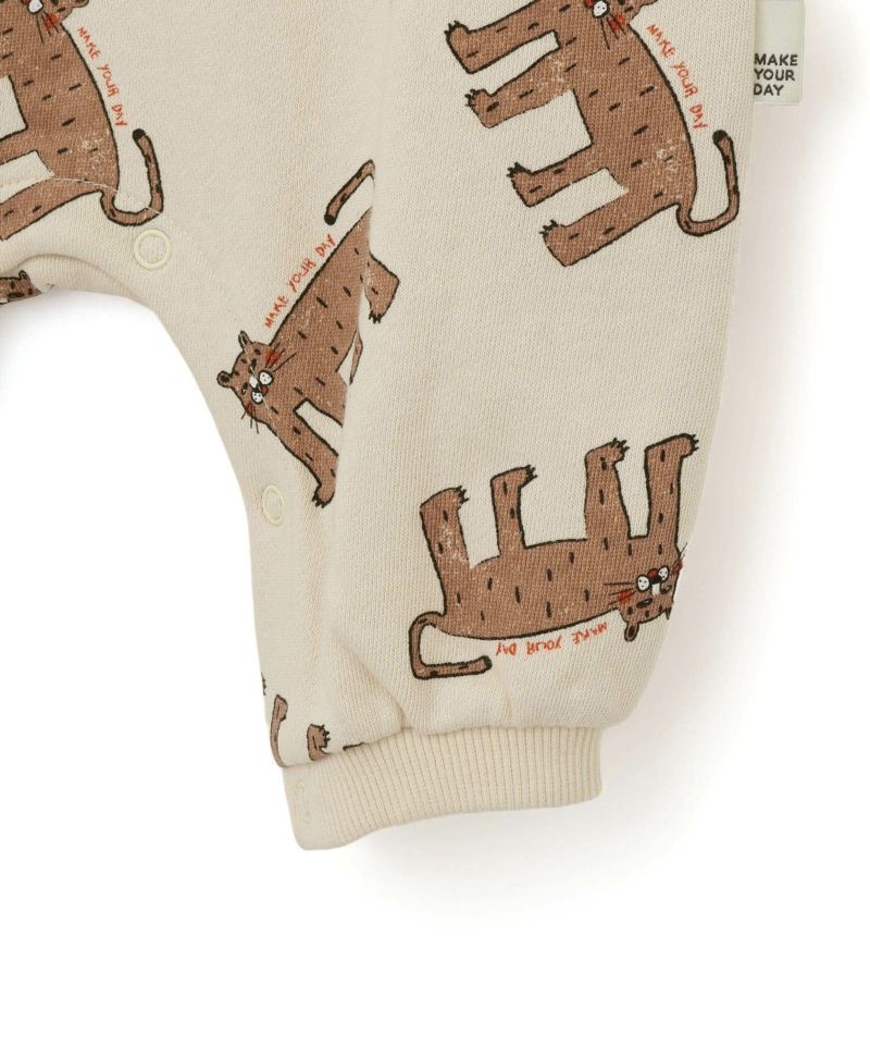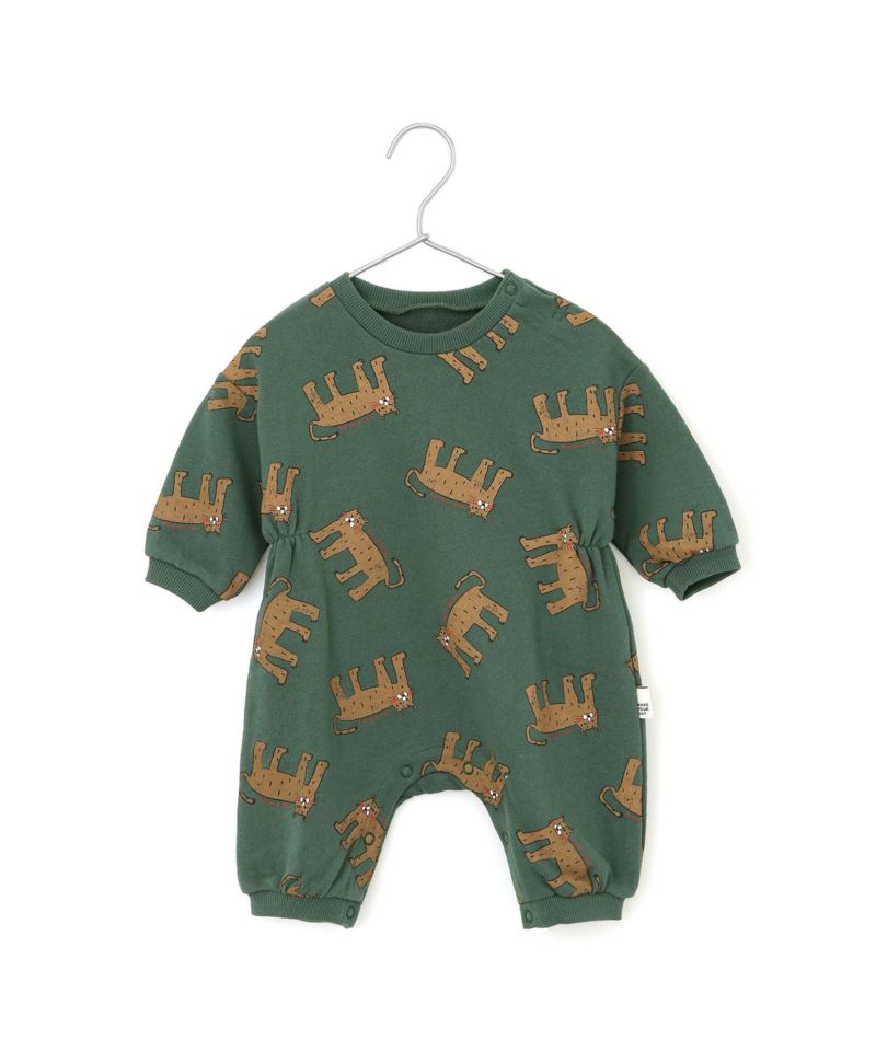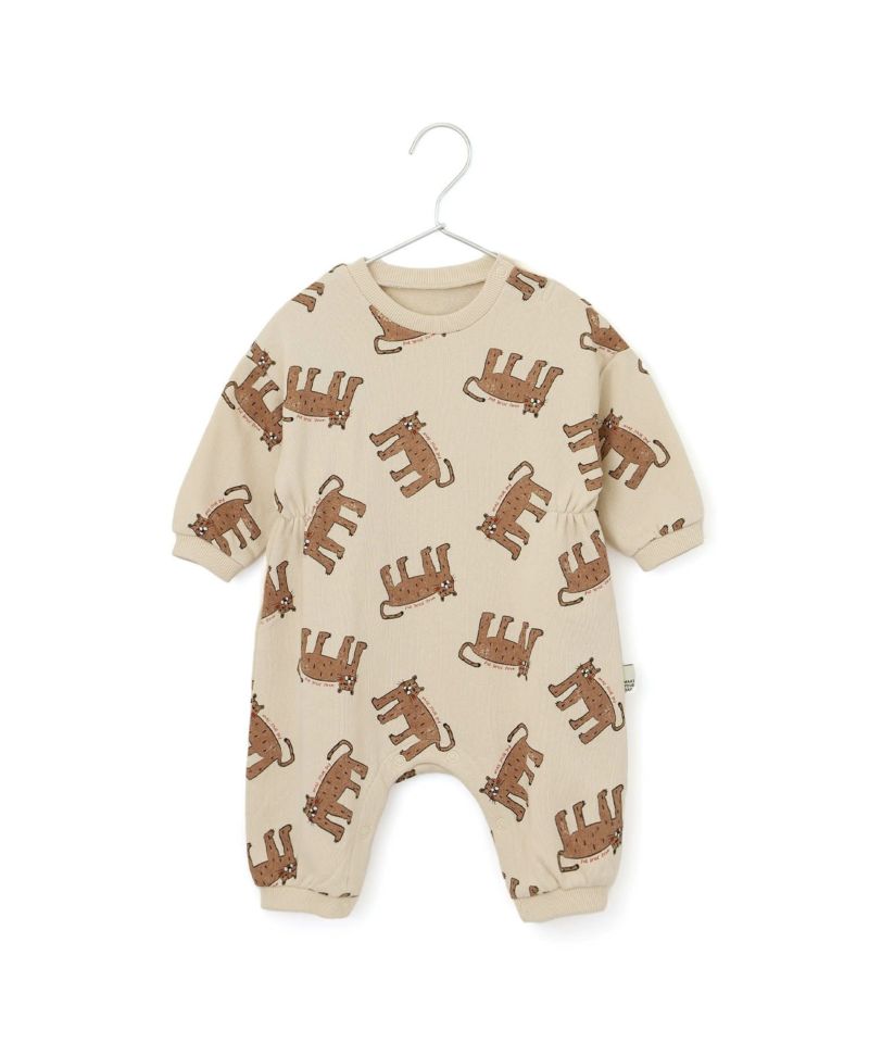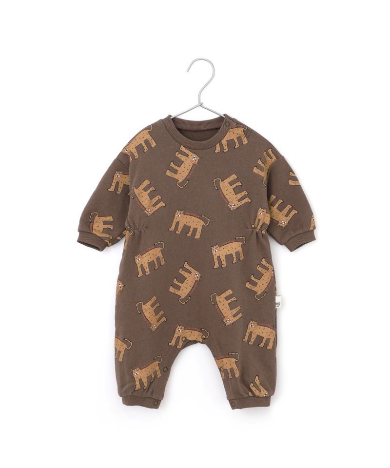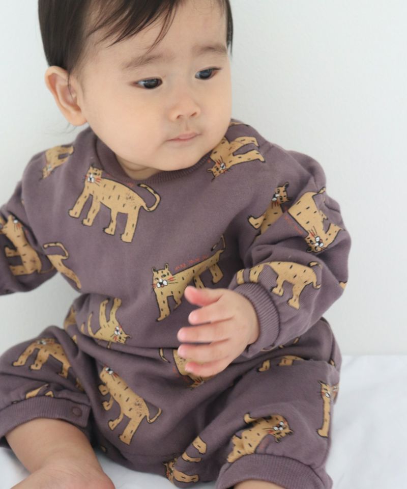 【セール】アートなヒョウ総柄裏毛カバーオール