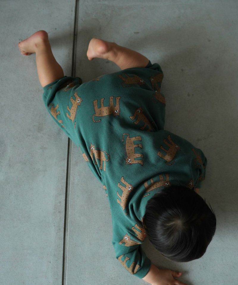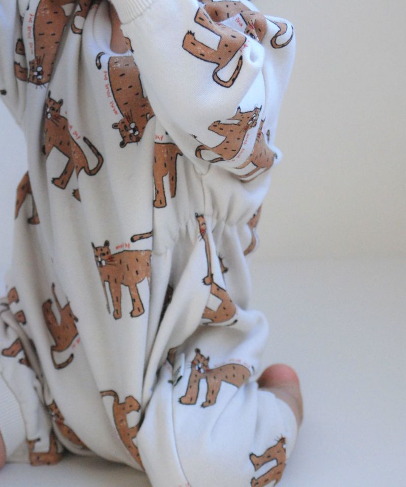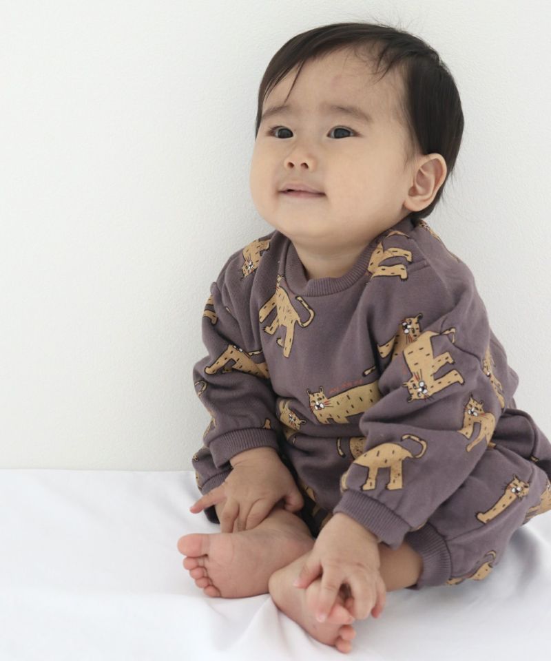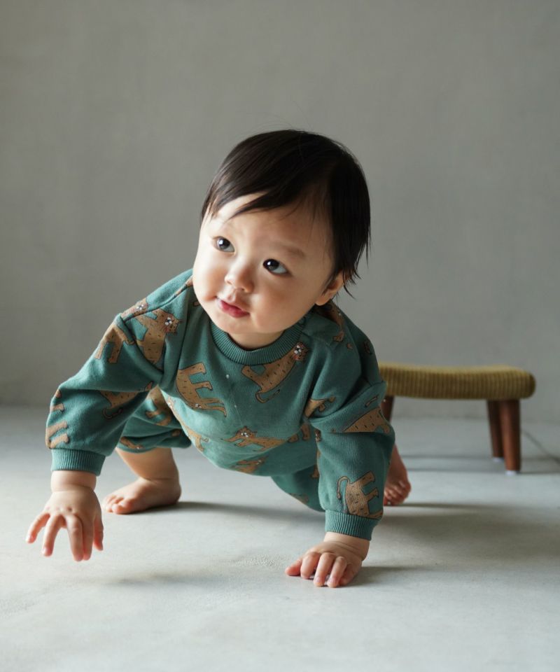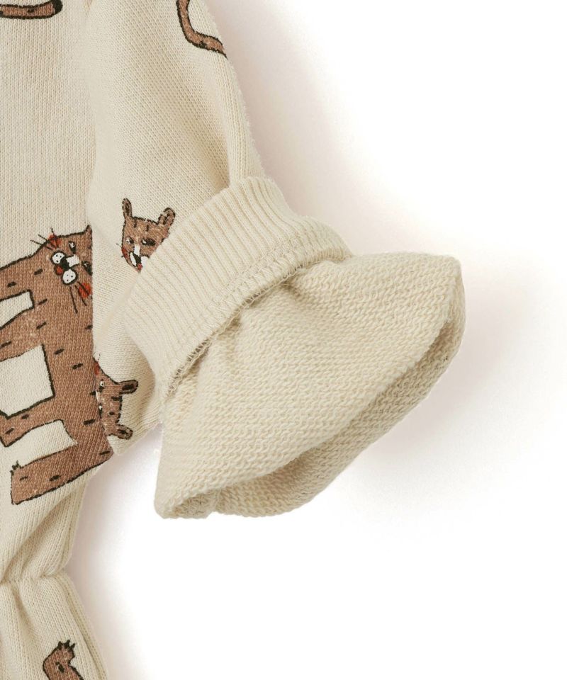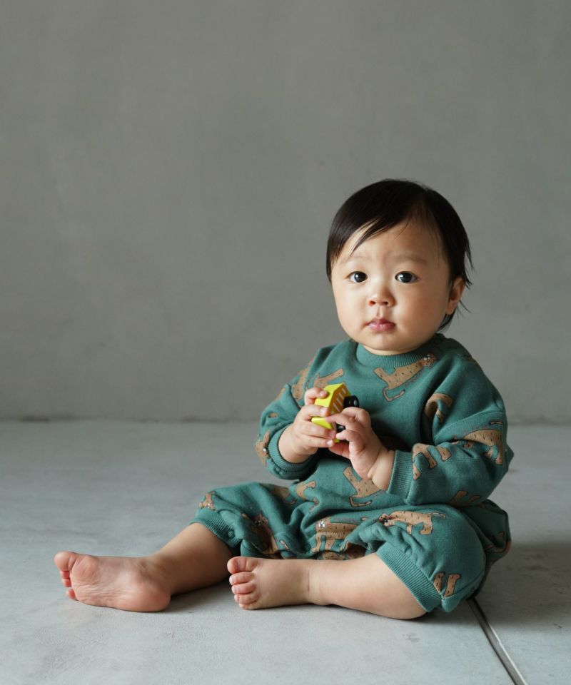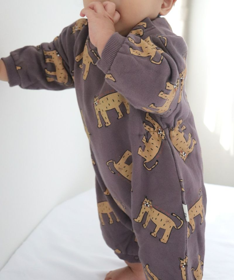 【セール】アートなヒョウ総柄裏毛カバーオール