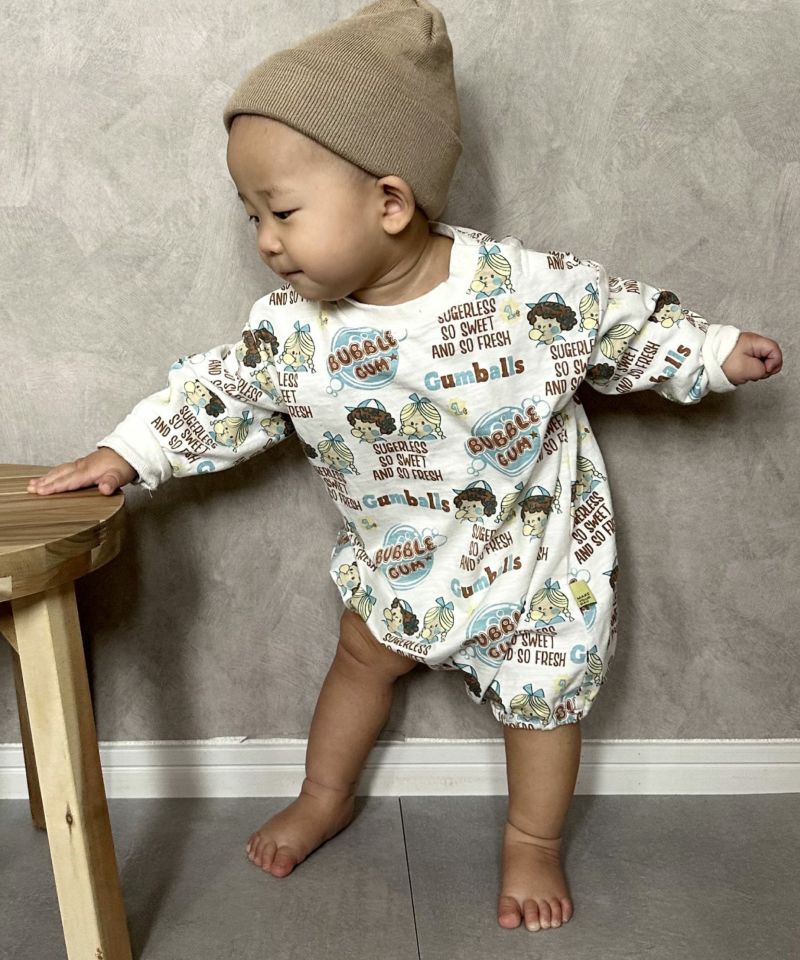 コットン100% で少し凹凸感のあるスラブ素材を使用した、ヘビロテ間違いナシの褒められロンパースです◎