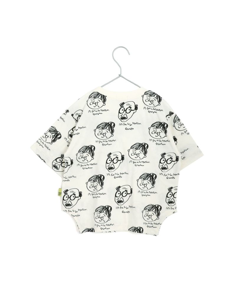 物知りそうなおじいちゃんと、やさしそうなおばあちゃんをモチーフにした総柄Tシャツ。