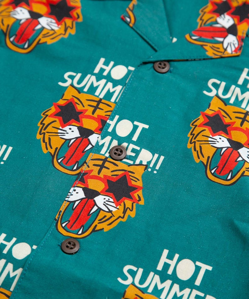 文字とトラ柄綿麻半袖シャツ■150.160cm