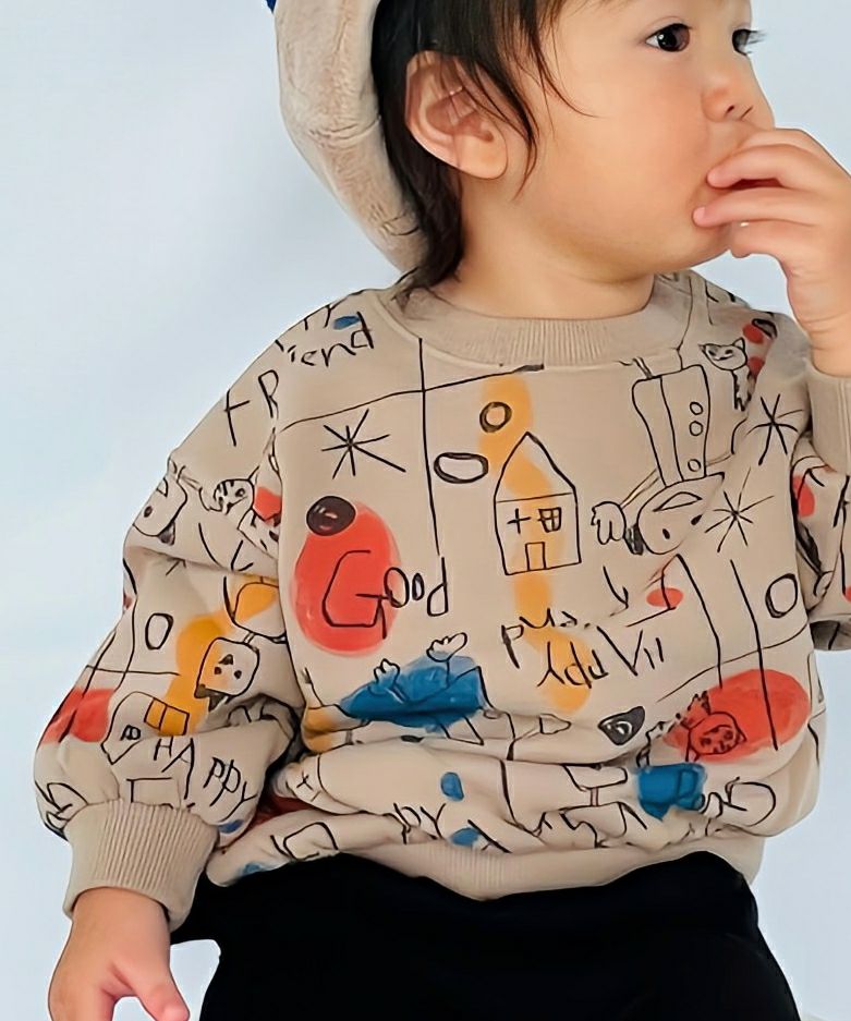 【セール】ラクガキ総柄裏毛トレーナー■80~140cm