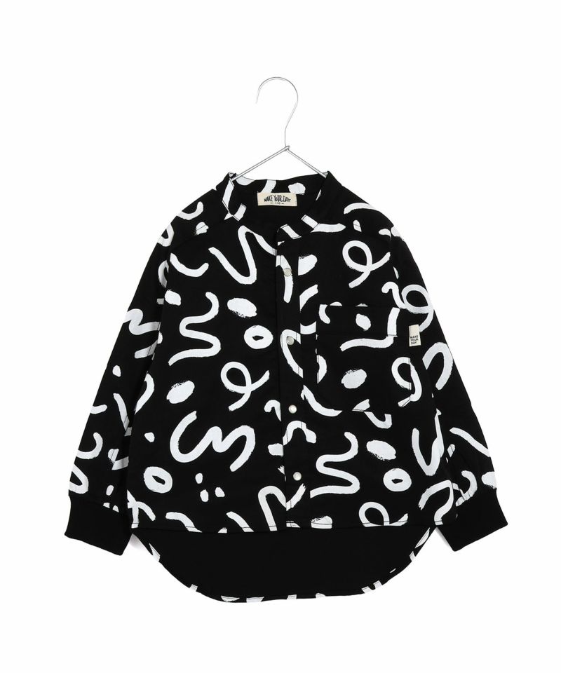 総柄バンドカラー長袖シャツ■80~140cm